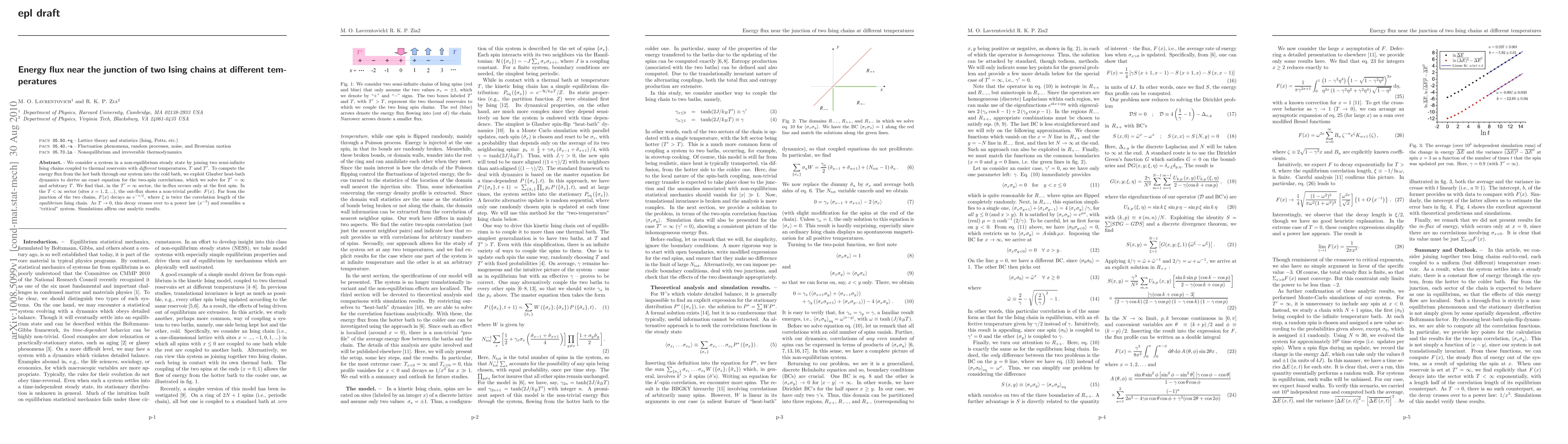 We consider a system in a non-equilibrium steady state by joining two semi-infinite Ising chains coupled to thermal reservoirs with {\em different} temperatures, $T$ and $T^{\prime}$. To compute the energy flux from the hot bath through our system into the cold bath, we exploit Glauber heat-bath dynamics to derive an exact equation for the two-spin correlations, which we solve for $T^{\prime}=\infty$ and arbitrary $T$. We find that, in the $T'=\infty$ sector, the in-flux occurs only at the first spin. In the $T<\infty$ sector (sites $x=1,2,...$), the out-flux shows a non-trivial profile: $F(x)$. Far from the junction of the two chains, $F(x)$ decays as $e^{-x/\xi}$, where $\xi$ is twice the correlation length of the {\em equilibrium} Ising chain. As $T\rightarrow 0$, this decay crosses over to a power law ($x^{-3}$) and resembles a "critical" system. Simulations affirm our analytic results.