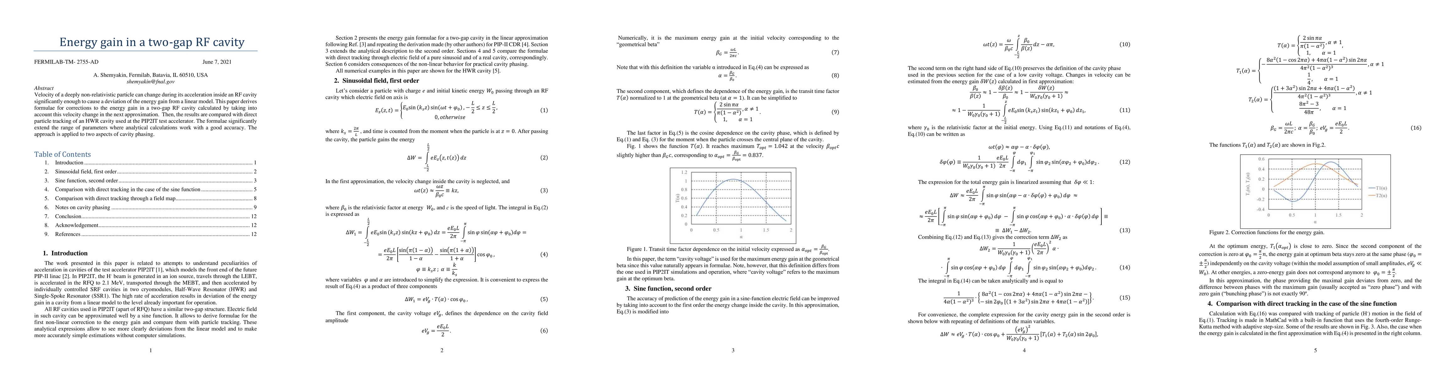 Velocity of a deeply non-relativistic particle can change during its acceleration inside an RF cavity significantly enough to cause a deviation of the energy gain from a linear model. This paper derives formulae for corrections to the energy gain in a two-gap RF cavity calculated by taking into account this velocity change in the next approximation. Then, the results are compared with direct particle tracking of an HWR cavity used at the PIP2IT test accelerator. The formulae significantly extend the range of parameters where analytical calculations work with a good accuracy. The approach is applied to two aspects of cavity phasing.
