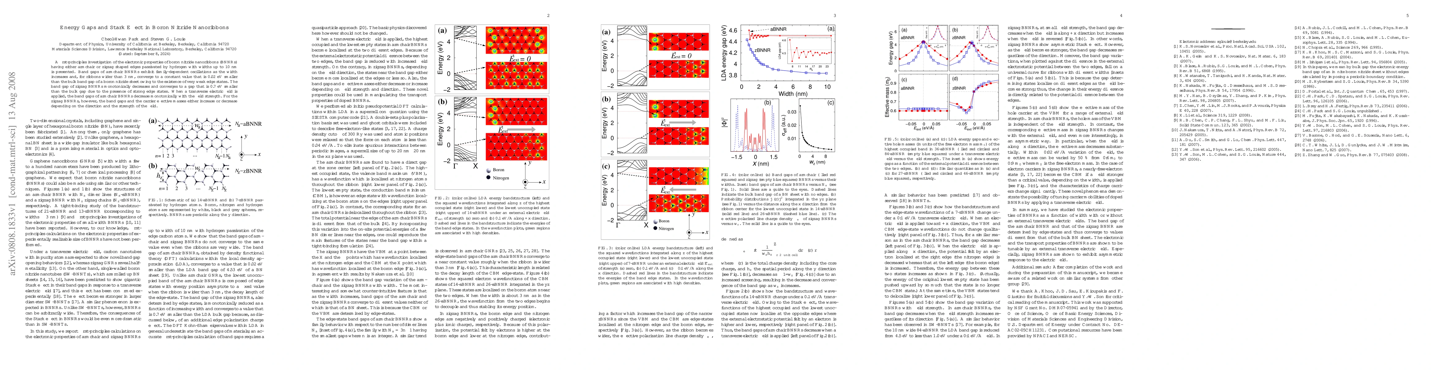 This research investigates the electronic properties of hydrogen-passivated boron nitride nanoribbons, revealing that armchair ribbons exhibit oscillatory band gaps converging to a value slightly smaller than bulk BN, while zigzag ribbons show a monotonic decrease in band gap. The Stark effect further influences band gaps differently in armchair versus zigzag nanoribbons.