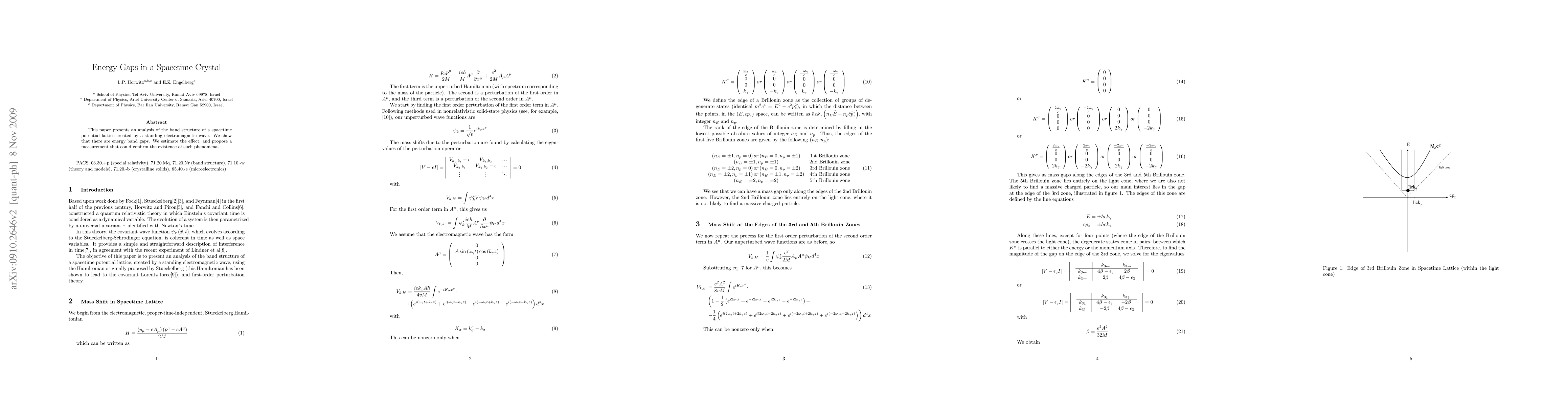 Researchers analyze a spacetime potential lattice created by a standing electromagnetic wave, discovering energy band gaps that could have significant implications for our understanding of the universe.