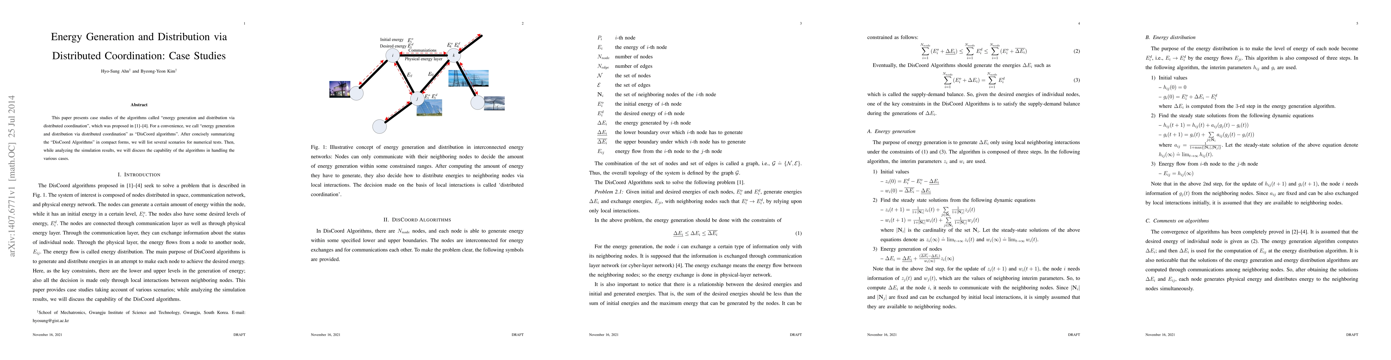 This paper summarizes "DisCoord Algorithms" for energy generation and distribution via distributed coordination, followed by case studies and numerical simulations to evaluate their effectiveness across various scenarios. The analysis reveals the algorithms' performance in handling diverse situations.