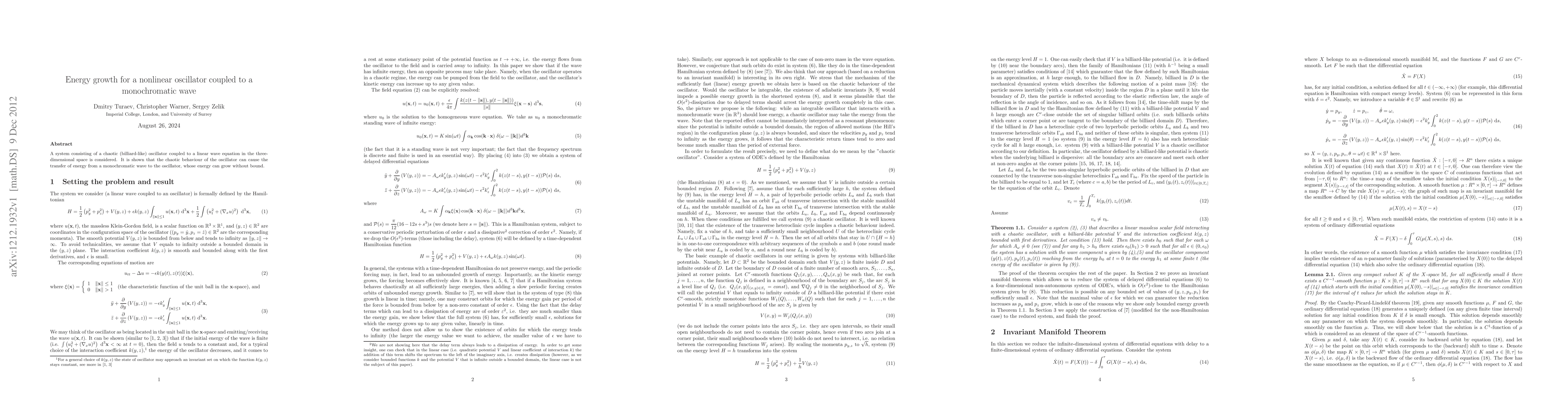 A nonlinear oscillator's chaotic behavior causes it to absorb energy from a monochromatic wave, leading to unbounded energy growth in the oscillator.