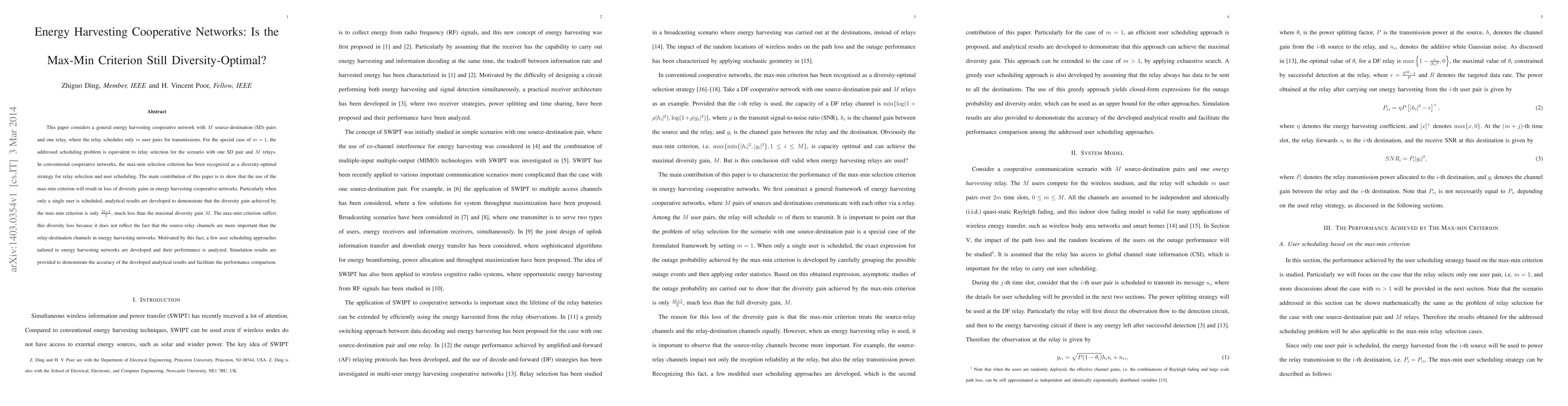 This paper investigates the max-min criterion's effectiveness in energy harvesting cooperative networks, finding that it results in significant diversity gain loss compared to the maximal potential. It proposes alternative scheduling approaches tailored to the unique characteristics of such networks.