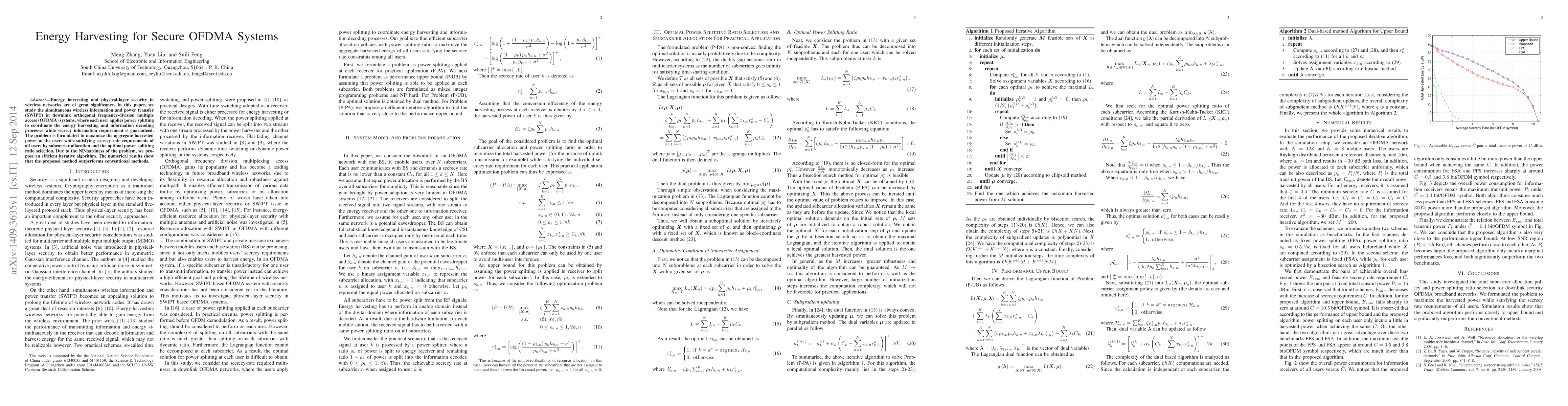 This paper proposes an efficient algorithm for energy harvesting in OFDMA systems with guaranteed secrecy information requirements, outperforming conventional methods numerically.