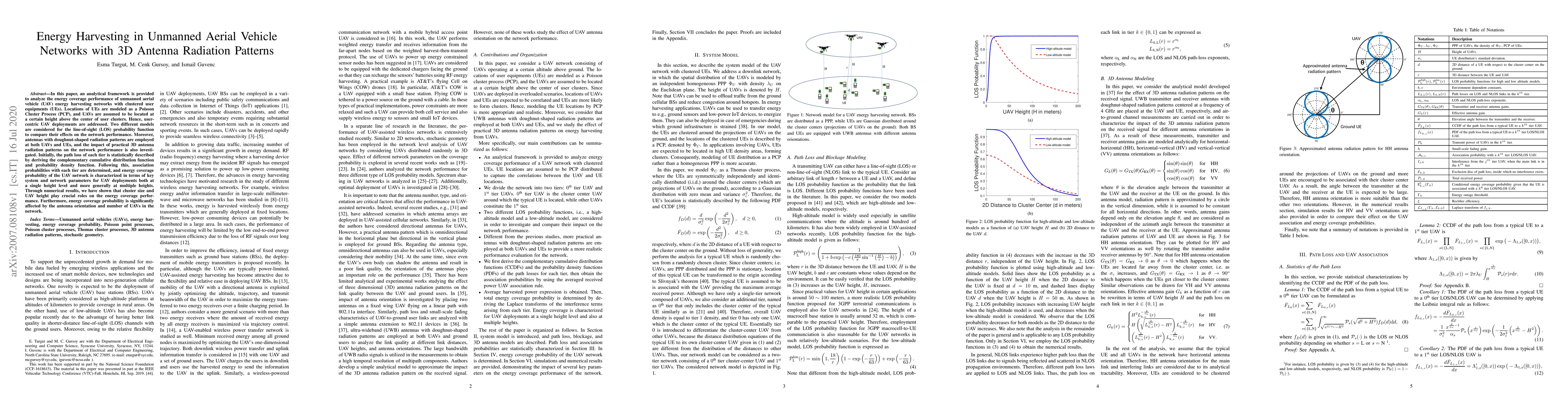This paper develops an analytical framework to evaluate the energy coverage in UAV networks with clustered user equipments, employing 3D antenna radiation patterns. It investigates the impact of different line-of-sight models and antenna orientations on network performance, revealing that cluster size, UAV height, and antenna configuration significantly influence energy coverage probability.