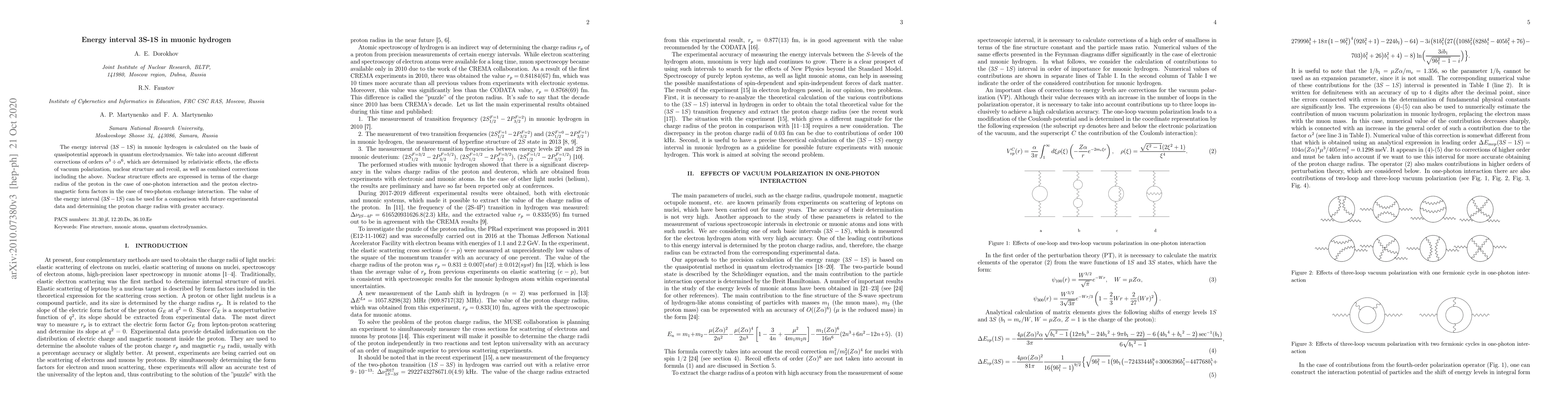 Researchers calculated the energy interval (3S-1S) in muonic hydrogen using quasipotential approach, accounting for relativistic effects, vacuum polarization, nuclear structure, and recoil corrections.