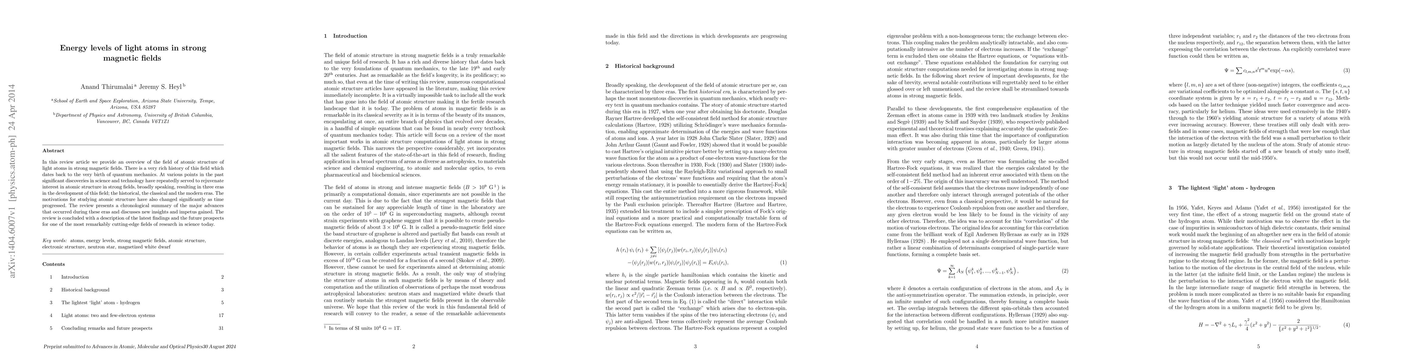 This review article chronicles the evolution of atomic structure studies of light atoms in strong magnetic fields, spanning historical, classical, and modern eras, and highlights recent discoveries and future research directions in this cutting-edge field.