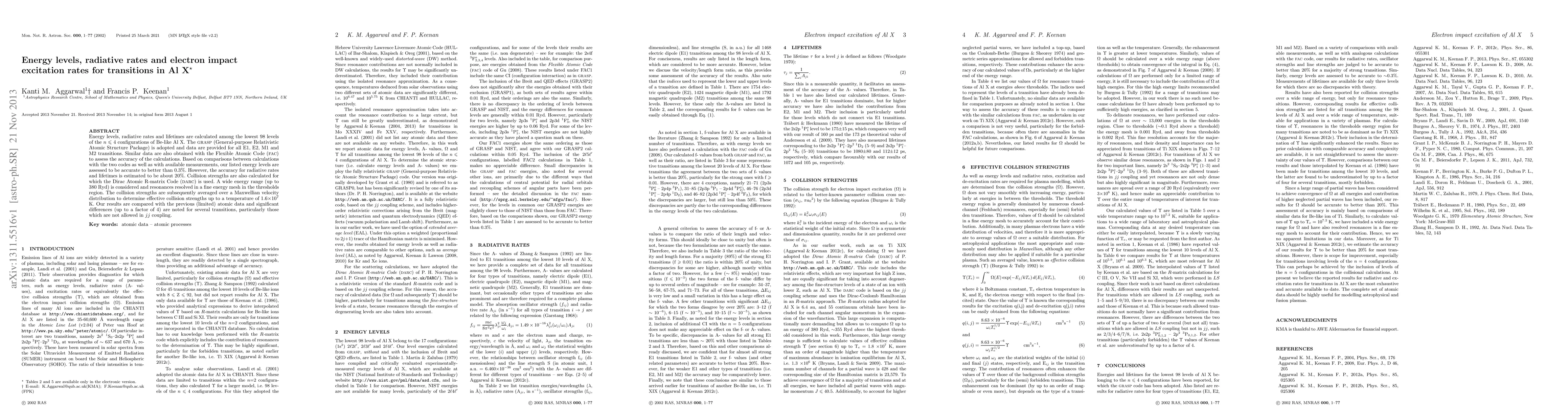 This paper calculates energy levels, radiative rates, and electron impact excitation rates for transitions among the lowest 98 levels of Be-like Al X using the GRASP and FAC codes. The energy levels are found to be accurate to better than 0.3%, while radiative rates have an estimated accuracy of 20%. Significant differences up to a factor of 4 are noted in some transitions compared to previous data.