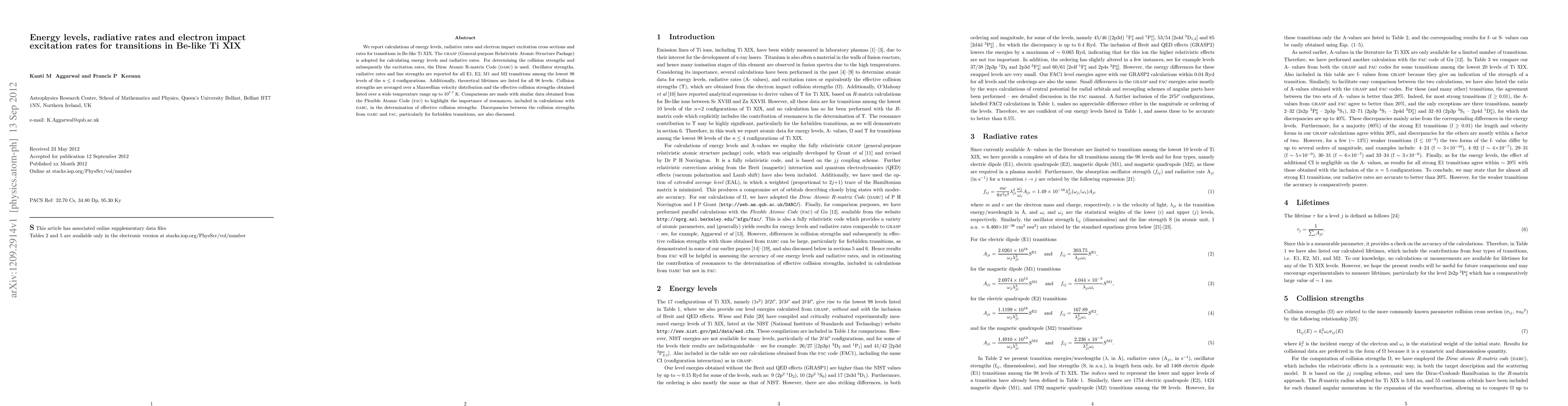 This paper reports detailed calculations of energy levels, radiative rates, and electron impact excitation rates for transitions in Be-like Ti XIX using the GRASP and DARC codes. It highlights the importance of resonances in determining effective collision strengths, especially for forbidden transitions, and discusses discrepancies with similar data from the FAC.