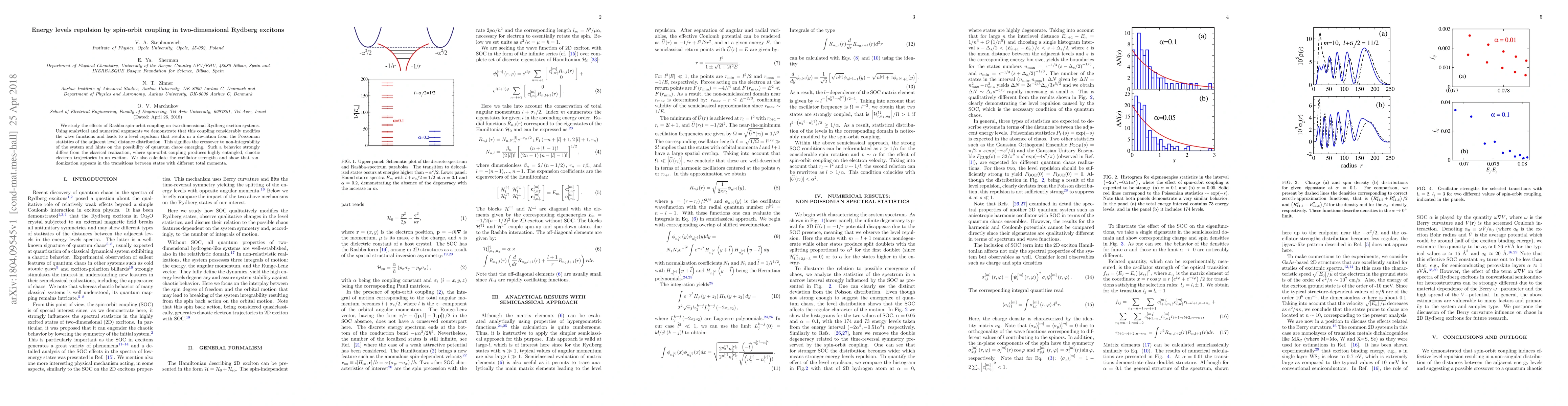 We study the effects of Rashba spin-orbit coupling on two-dimensional Rydberg exciton systems. Using analytical and numerical arguments we demonstrate that this coupling considerably modifies the wave functions and leads to a level repulsion that results in a deviation from the Poissonian statistics of the adjacent level distance distribution. This signifies the crossover to non-integrability of the system and hints on the possibility of quantum chaos emerging. Such a behavior strongly differs from the classical realization, where spin-orbit coupling produces highly entangled, chaotic electron trajectories in an exciton. We also calculate the oscillator strengths and show that randomization appears in the transitions between states with different total momenta.