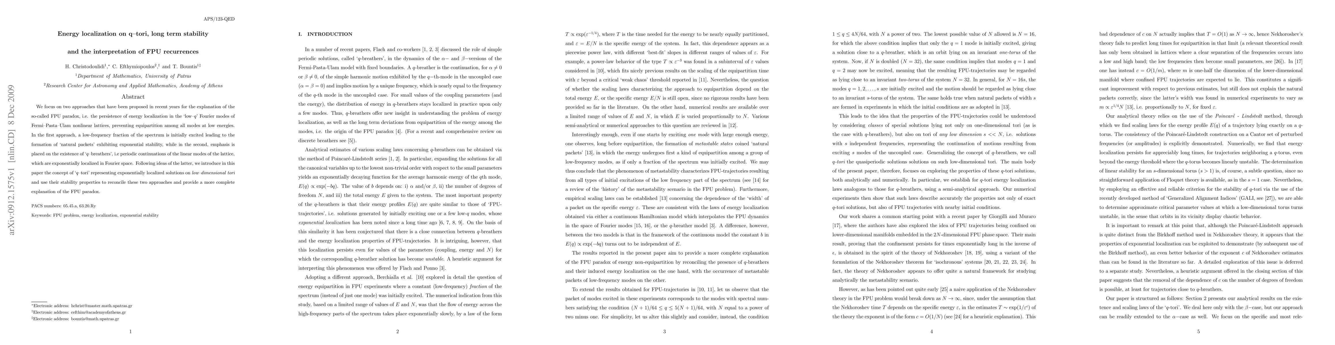 This paper explores two explanations for the FPU paradox, focusing on energy localization in low-energy modes of Fermi-Pasta-Ulam nonlinear lattices. It introduces the concept of "q-tori" for exponentially localized solutions to reconcile these explanations and provide a comprehensive understanding of the phenomenon.