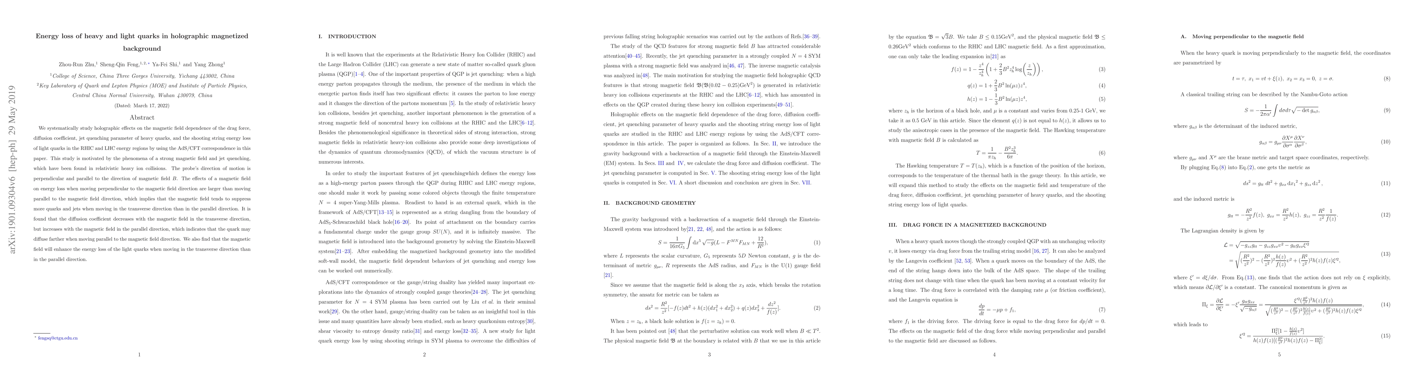 This paper investigates the energy loss of heavy and light quarks in a magnetized holographic background using the AdS/CFT correspondence, finding that magnetic fields suppress quark and jet energy loss more effectively when moving perpendicular to the field than parallel. The study reveals that the magnetic field enhances diffusion in the parallel direction but decreases it in the transverse direction.