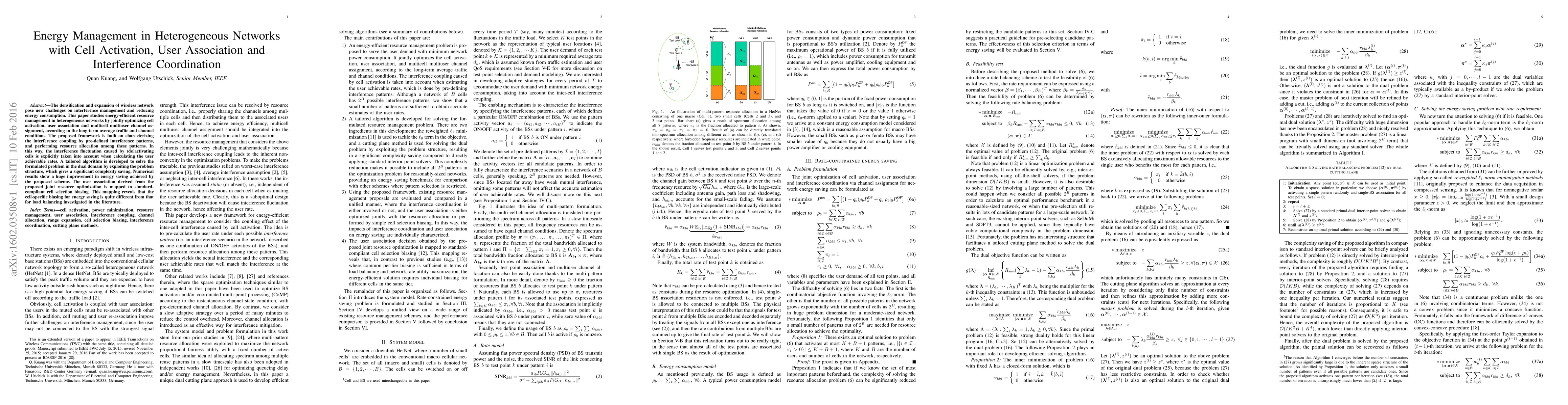 This paper proposes an energy-efficient resource management framework for heterogeneous networks, optimizing cell activation, user association, and interference coordination. The developed algorithm significantly reduces energy consumption while considering interference patterns and user achievable rates, leading to substantial energy savings.