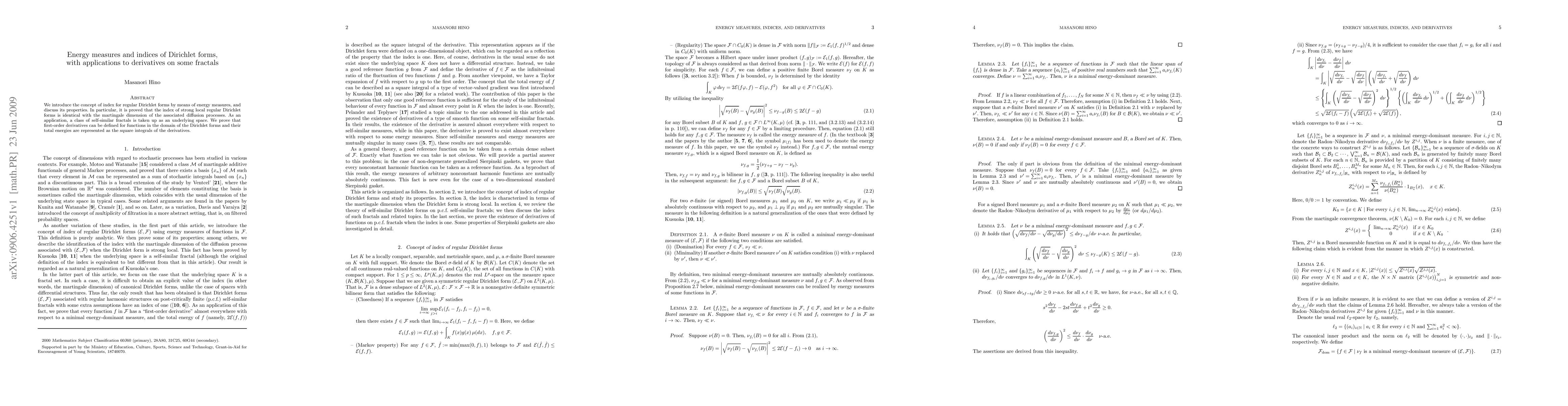 Researchers introduce an index for regular Dirichlet forms based on energy measures, linking it to martingale dimension of associated diffusion processes. They apply this concept to self-similar fractals, enabling the definition of first-order derivatives and representation of total energies as square integrals.