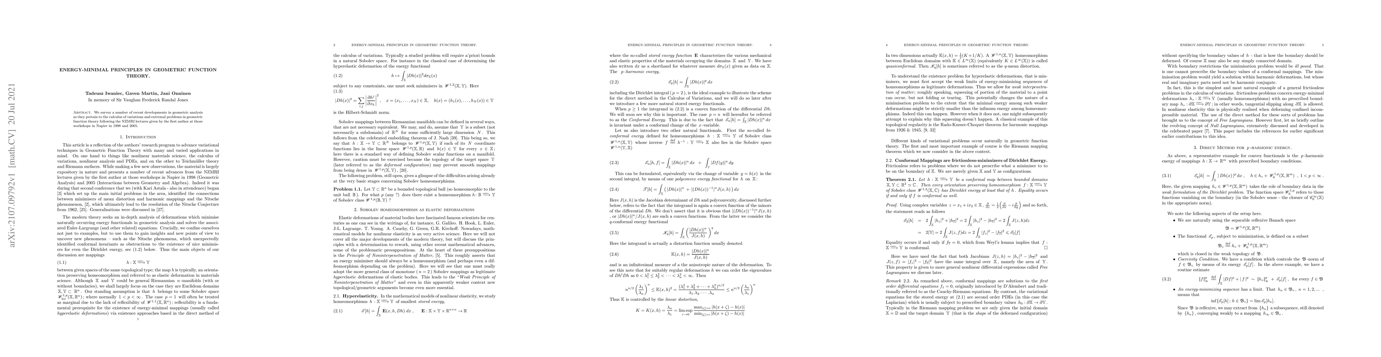 We survey a number of recent developments in geometric analysis as they pertain to the calculus of variations and extremal problems in geometric function theory following the NZMRI lectures given by the first author at those workshops in Napier in 1998 and 2005.