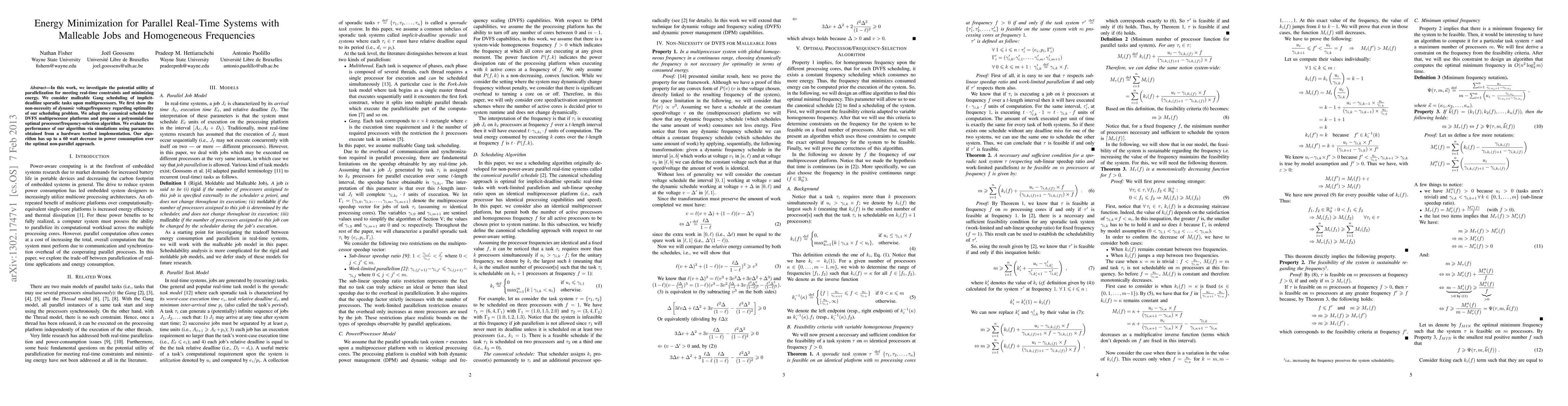 The work introduces a method to minimize energy consumption in parallel real-time systems with malleable jobs and homogeneous frequencies, proving the non-necessity of dynamic voltage/frequency scaling for optimality.