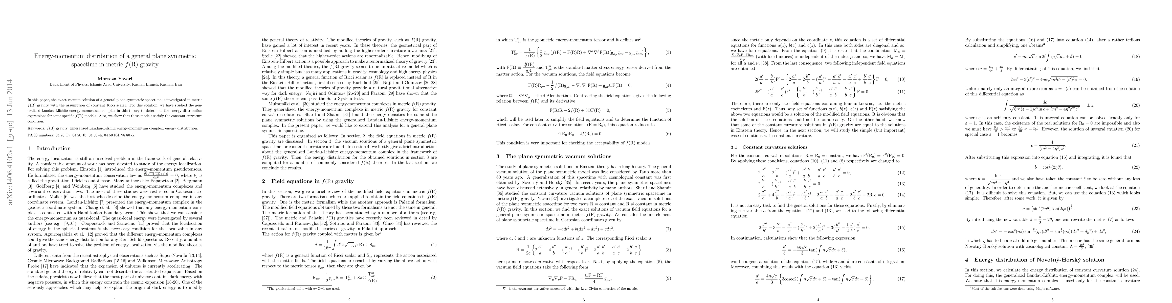 In this paper, the exact vacuum solution of a general plane symmetric spacetime is investigated in metric f(R) gravity with the assumption of constant Ricci scalar. For this solution, we have studied the generalized Landau-Lifshitz energy-momentum complex in this theory to determine the energy distribution expressions for some specific f(R) models. Also, we show that these models satisfy the constant curvature condition.