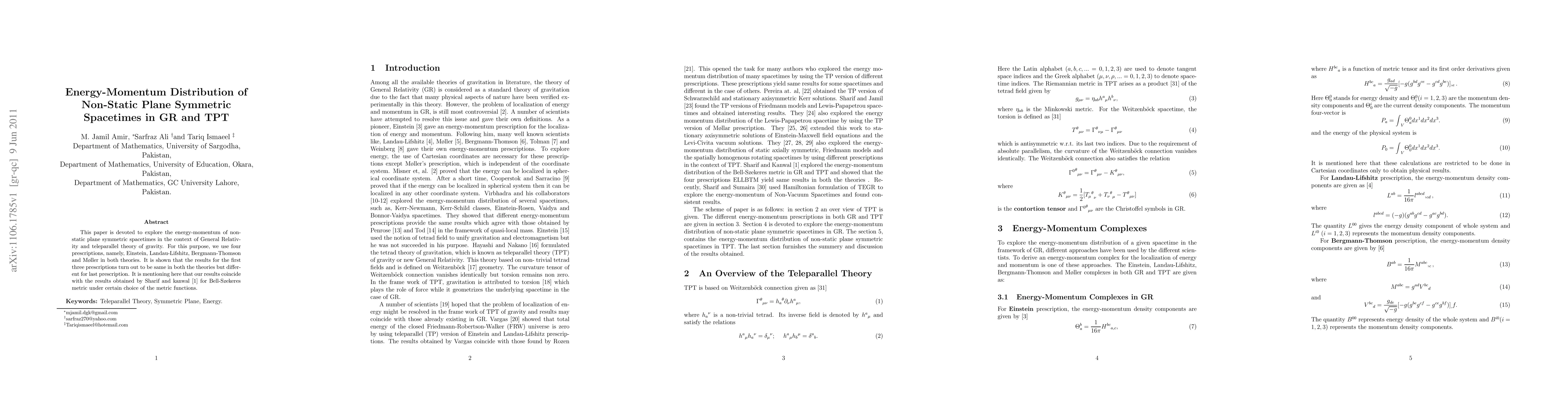 This paper investigates the energy-momentum distribution of non-static plane symmetric spacetimes using General Relativity and teleparallel theory of gravity, employing four different prescriptions. Results for three prescriptions are consistent across both theories, while the Møller prescription yields differing outcomes. The findings align with previous results for the Bell-Szekeres metric under specific conditions.