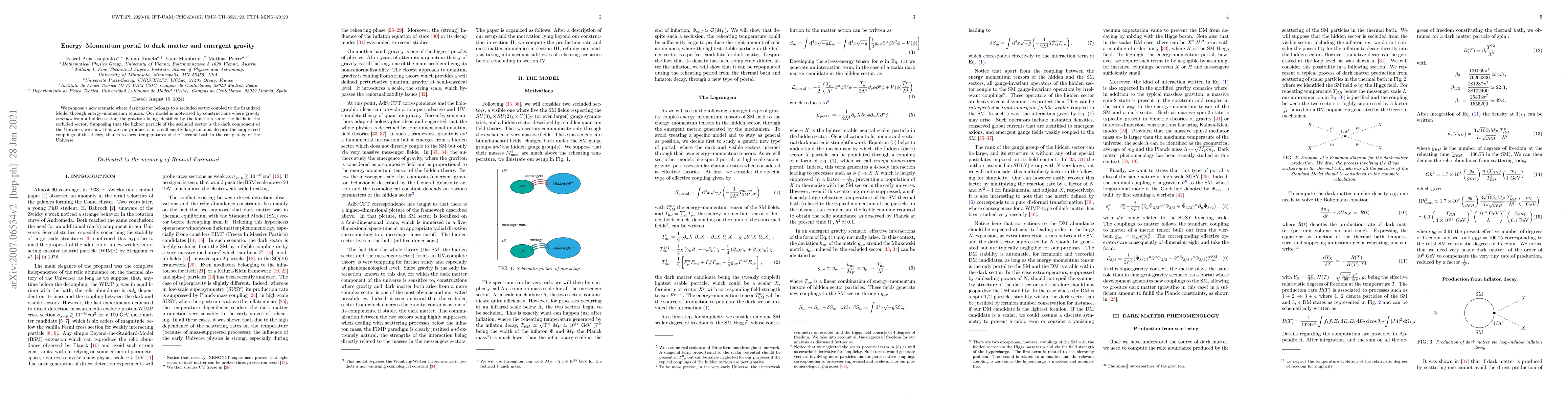 We propose a new scenario where dark matter belongs to a secluded sector coupled to the Standard Model through energy--momentum tensors. Our model is motivated by constructions where gravity {\it emerges} from a hidden sector, the graviton being identified by the kinetic term of the fields in the secluded sector. Supposing that the lighter particle of the secluded sector is the dark component of the Universe, we show that we can produce it in a sufficiently large amount despite the suppressed couplings of the theory, thanks to large temperatures of the thermal bath in the early stage of the Universe.