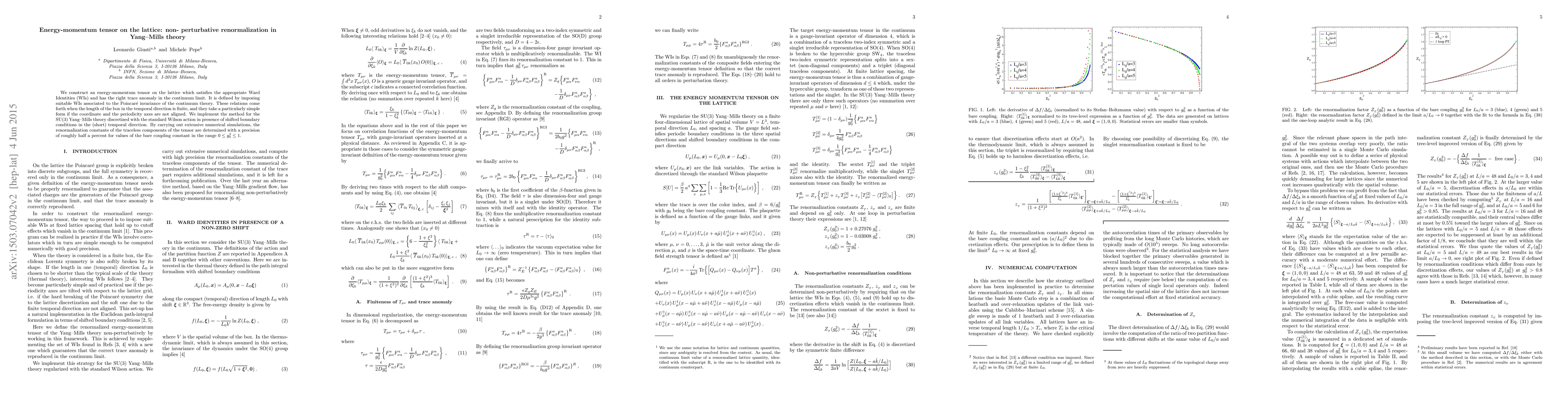 This paper constructs a lattice energy-momentum tensor for SU(3) Yang-Mills theory that satisfies Ward Identities and trace anomaly, achieving precise renormalization constants through extensive numerical simulations. The method is applied with shifted boundary conditions and the results show accuracy within half a percent for a range of bare coupling constants.