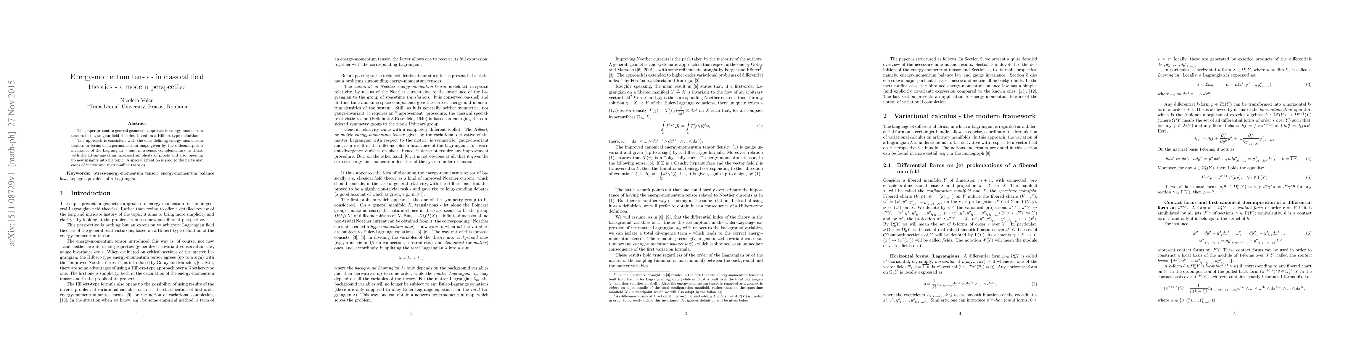 The paper introduces a simplified geometric approach to defining energy-momentum tensors in Lagrangian field theories using a Hilbert-type definition, providing clearer proofs and new insights, especially for metric and metric-affine theories. This method complements existing definitions based on hypermomentum maps and diffeomorphism invariance.
