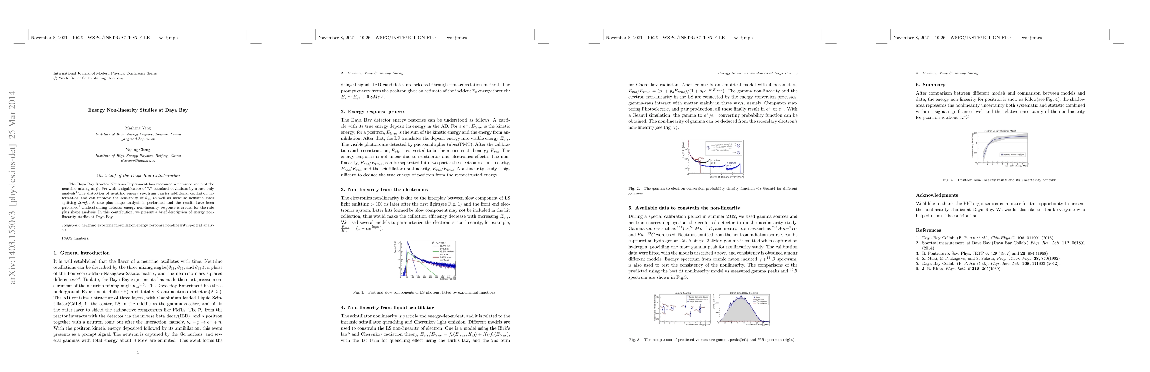 The Daya Bay Reactor Neutrino Experiment measured a significant non-zero value for the neutrino mixing angle $\theta_{13}$ using both rate-only and rate plus shape analyses. A detailed study of detector energy non-linearity was conducted to enhance the accuracy of these measurements.