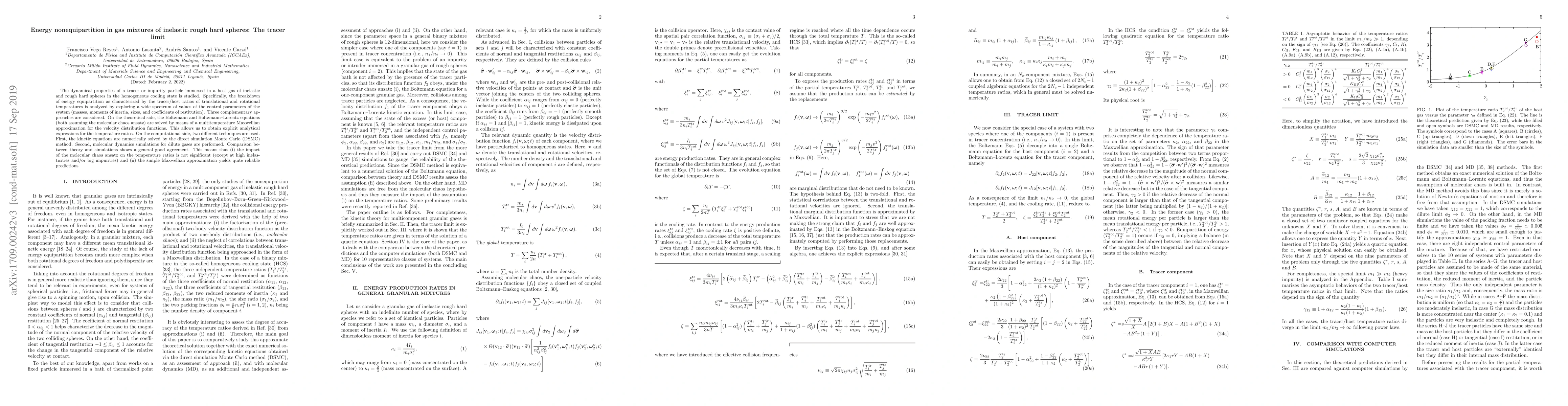 This paper investigates the dynamics of a tracer particle in a gas of inelastic and rough hard spheres, focusing on the breakdown of energy equipartition. Analytical, DSMC, and molecular dynamics simulations reveal that the molecular chaos ansatz and Maxwellian approximation provide reliable predictions for temperature ratios, except under extreme conditions.