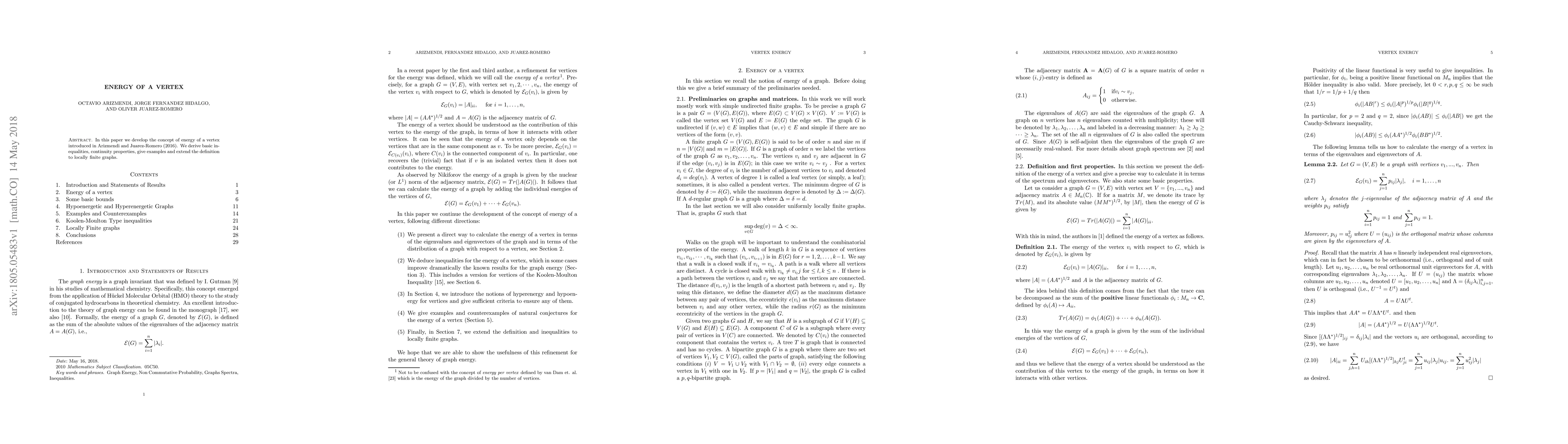 In this paper we develop the concept of energy of a vertex introduced in Arizmendi and Juarez-Romero (2016). We derive basic inequalities, continuity properties, give examples and extend the definition to locally finite graphs.