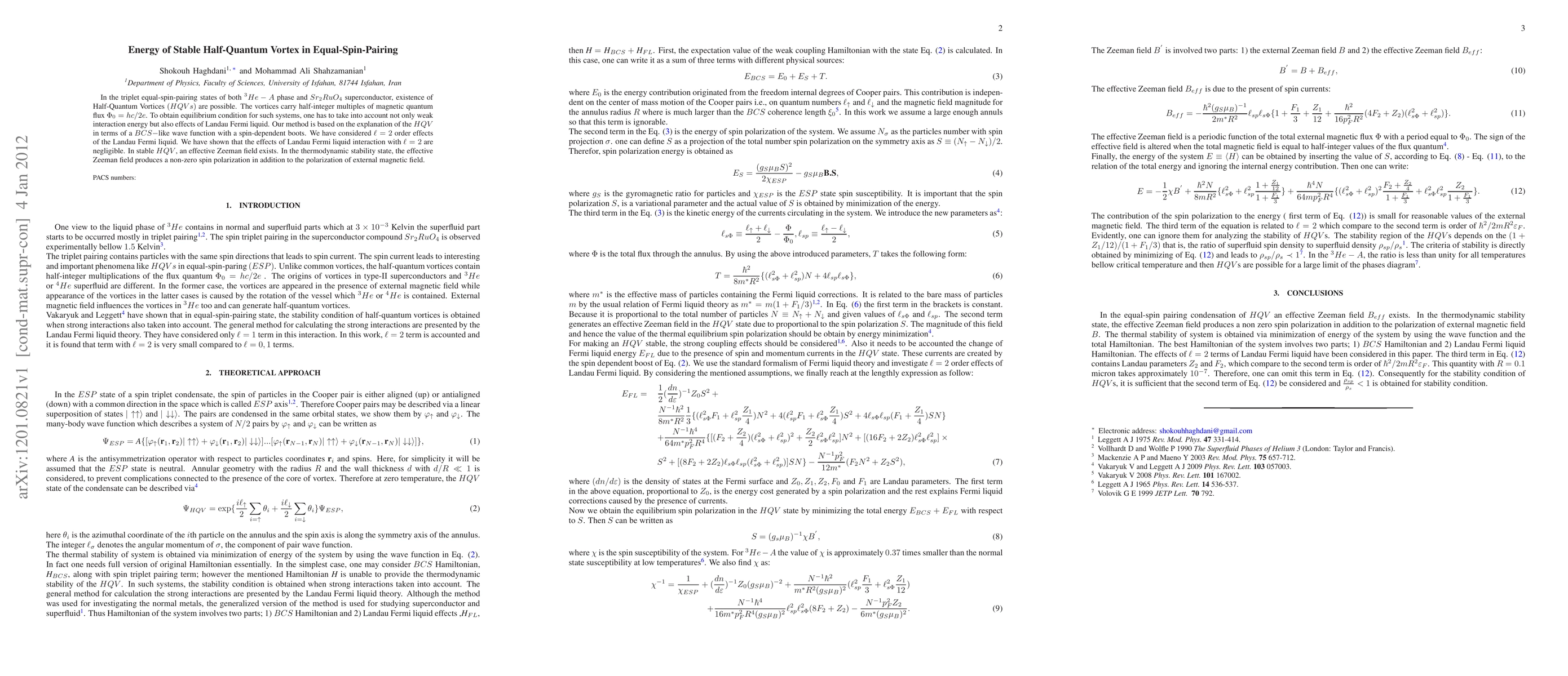 In the triplet equal-spin-pairing states of both 3He-A phase and Sr2RuO4 superconductor, existence of Half-Quantum Vortices HQVs are possible. The vortices carry half-integer multiples of magnetic quantum flux (hc/2e). To obtain equilibrium condition for such systems, one has to take into account not only weak interaction energy but also effects of Landau Fermi liquid. Our method is based on the explanation of the HQV in terms of a BCS-like wave function with a spin-dependent boots. We have considered l=2 order effects of the Landau Fermi liquid. We have shown that the effects of Landau Fermi liquid interaction with l=2 are negligible. In stable HQV, an effective Zeeman field exists. In the thermodynamic stability state, the effective Zeeman field produces a non-zero spin polarization in addition to the polarization of external magnetic field.