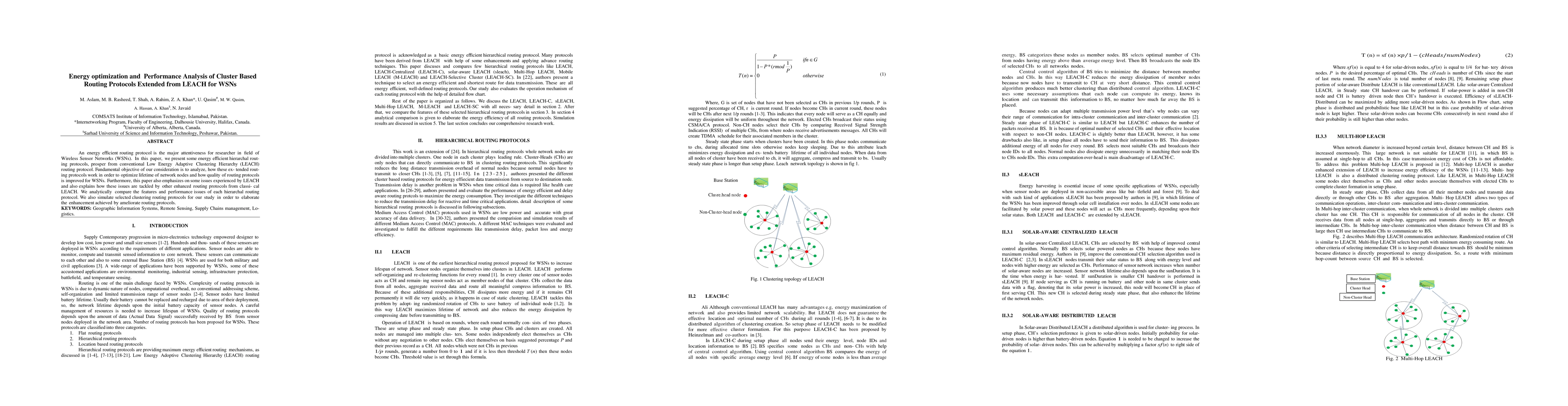 This paper proposes enhanced hierarchical routing protocols derived from LEACH to optimize energy efficiency and extend the lifetime of nodes in Wireless Sensor Networks (WSNs). It analyzes the performance improvements and addresses issues inherent in the original LEACH protocol through simulation and comparison.