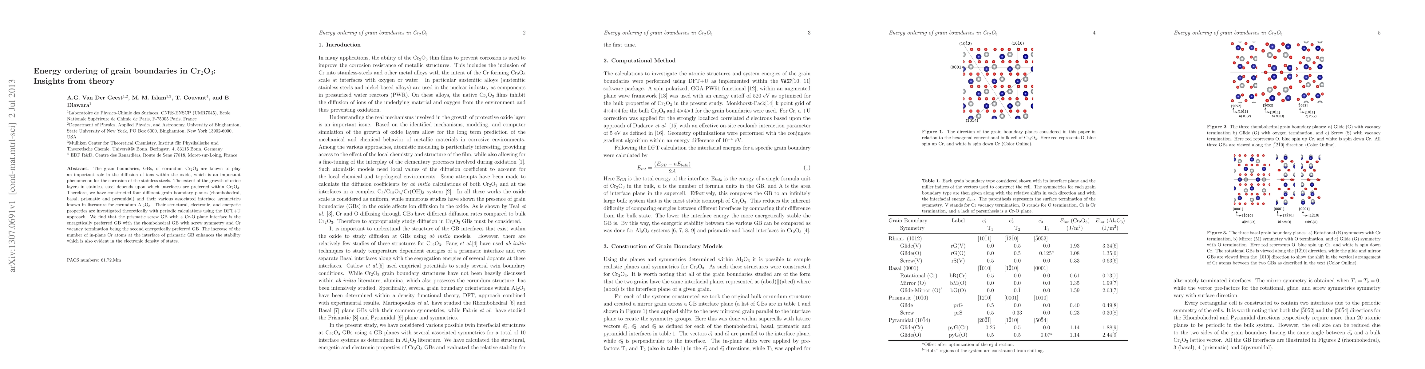 Theoretical research identifies prismatic screw grain boundaries in Cr2O3 as the most energetically preferred interfaces for ion diffusion and oxide layer growth in stainless steel, with rhombohedral GBs being the second most stable option.