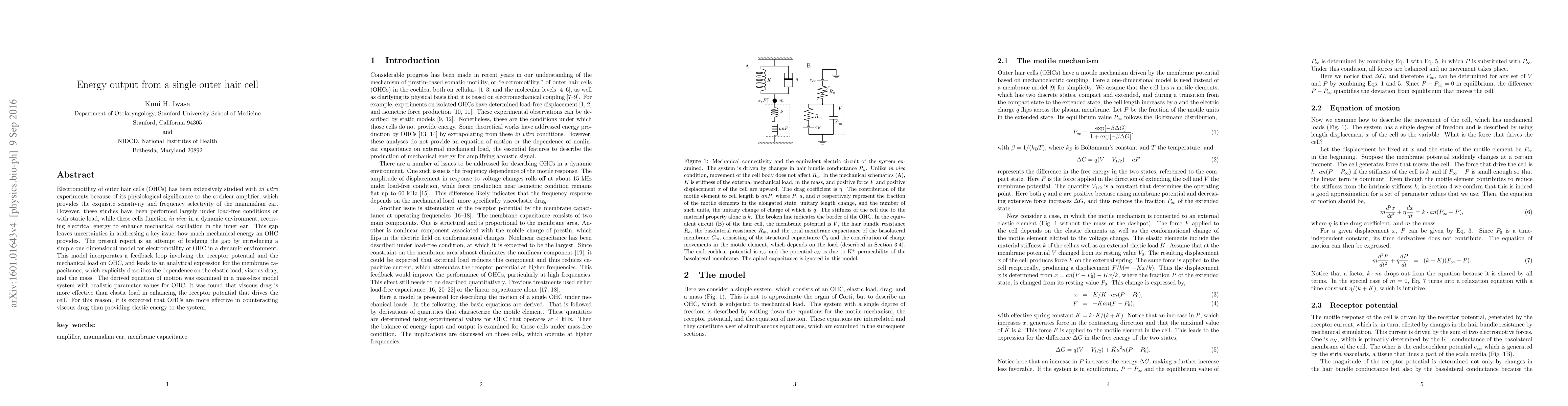 Electromotility of outer hair cells (OHCs) has been extensively studied with in vitro experiments because of its physiological significance in the cochlear amplifier, which provides the exquisite sensitivity and frequency selectivity of the mammalian ear. However, these studies have been performed largely under load-free conditions or with static load, while these cells function in vivo in a dynamic environment, receiving electrical energy to enhance mechanical oscillation in the inner ear. This gap leaves uncertainties in addressing a key issue, how much mechanical energy an OHC provides. The present report is an attempt of bridging the gap by introducing a simple one-dimensional model for electromotility of OHC in a dynamic environment. This model incorporates a feedback loop involving the receptor potential and the mechanical load on OHC, and leads to an analytical expression for the membrane capacitance, which explicitly describes the dependence on the elastic load, viscous drag, and the mass. The derived equation of motion was examined in a mass-less model system with realistic parameter values for OHC. It was found that viscous drag is more effective than elastic load in enhancing the receptor potential that drives the cell. For this reason, it is expected that OHCs are more effective in counteracting viscous drag than providing elastic energy to the system.