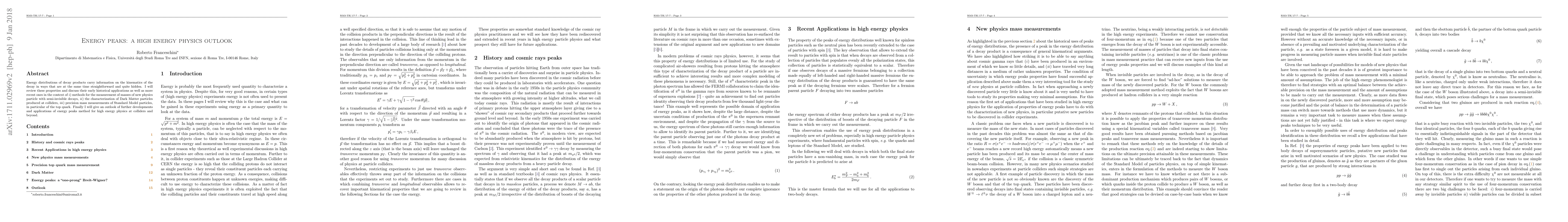 This paper reviews the properties of energy distributions in decay products, highlighting their historical and recent applications in measuring new physics particles, characterizing Dark Matter, and achieving precision mass measurements of Standard Model particles, particularly the top quark. It concludes with an outlook on future developments and broader applications of the energy peaks method in high energy physics.