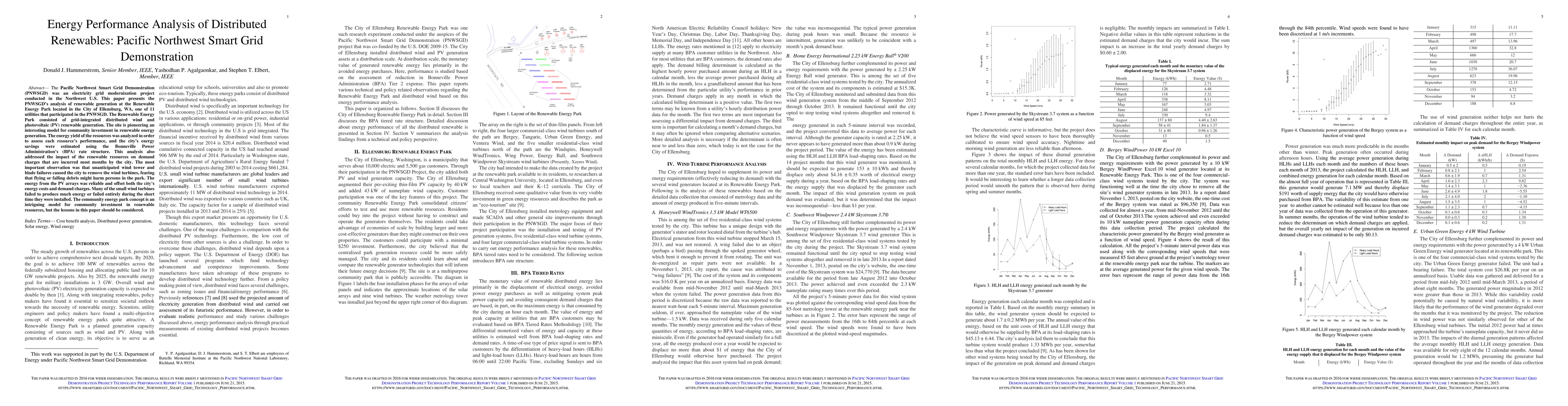 The Pacific Northwest Smart Grid Demonstration was an electricity grid modernization project conducted in the Northwest U.S. This paper presents the analysis of renewable generation at the Renewable Energy Park located in the City of Ellensburg, WA. The community energy park concept is an intriguing model for community investment in renewable resources,but the lessons in this paper should be considered.