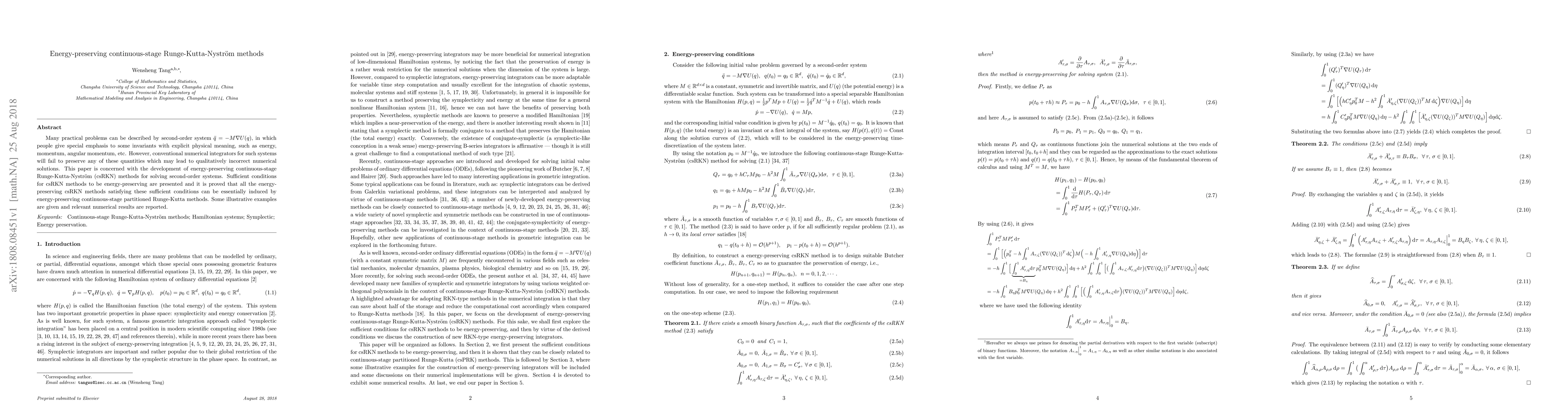 This paper develops energy-preserving continuous-stage Runge-Kutta-Nyström (csRKN) methods for solving second-order differential systems, ensuring conservation of physical invariants like energy. It proves that csRKN methods meeting specific conditions are derived from energy-preserving continuous-stage partitioned Runge-Kutta methods and provides numerical examples to demonstrate the effectiveness.