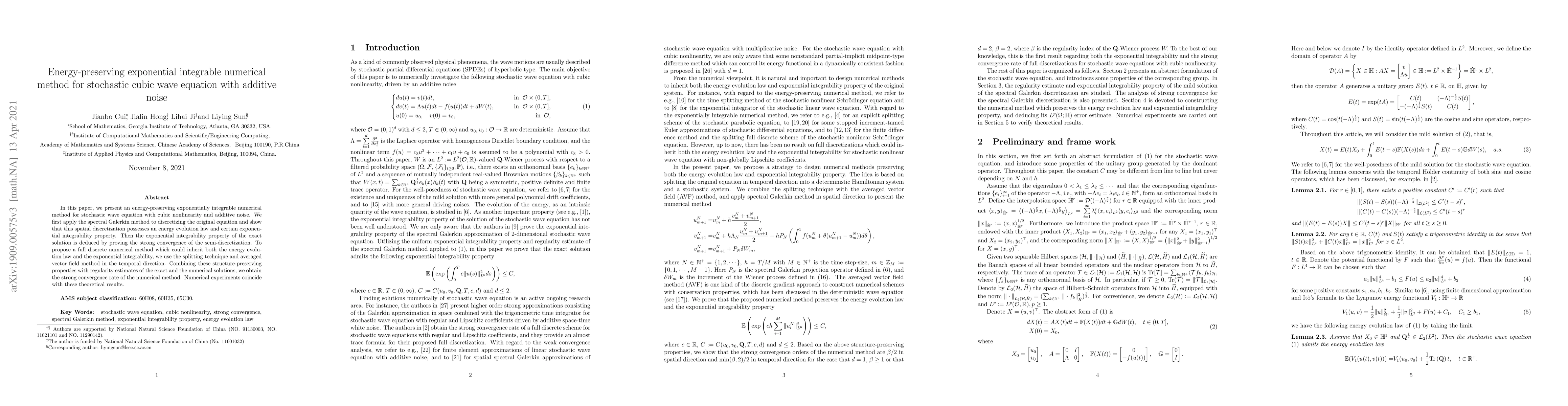 In this paper, we present an energy-preserving exponentially integrable numerical method for stochastic wave equation with cubic nonlinearity and additive noise. We first apply the spectral Galerkin method to discretizing the original equation and show that this spatial discretization possesses an energy evolution law and certain exponential integrability property. Then the exponential integrability property of the exact solution is deduced by proving the strong convergence of the semi-discretization. To propose a full discrete numerical method which could inherit both the energy evolution law and the exponential integrability, we use the splitting technique and averaged vector field method in the temporal direction. Combining these structure-preserving properties with regularity estimates of the exact and the numerical solutions, we obtain the strong convergence rate of the numerical method. Numerical experiments coincide with these theoretical results.
