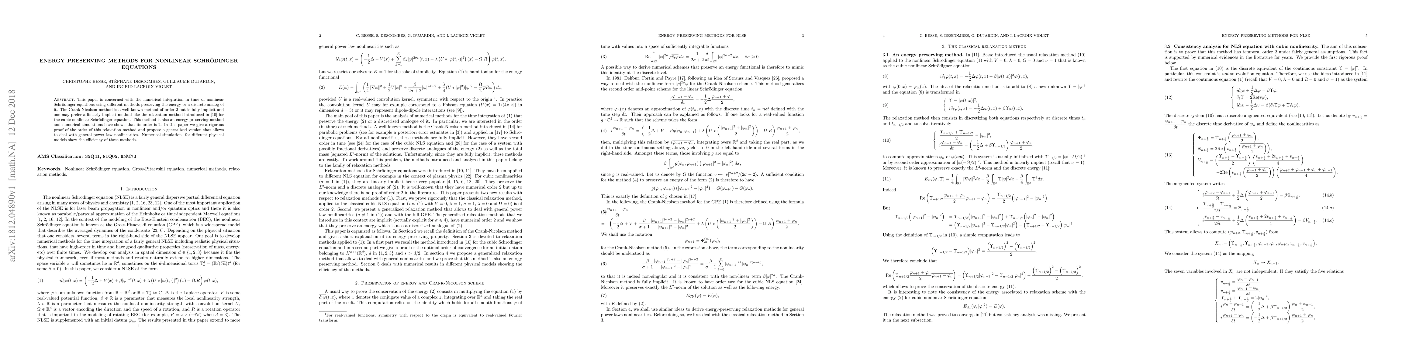 This paper explores energy-preserving numerical methods for solving nonlinear Schrödinger equations, focusing on the Crank-Nicolson and relaxation methods. It rigorously proves the second-order accuracy of the relaxation method and proposes a generalized version for various nonlinearities, demonstrating their effectiveness through numerical simulations.