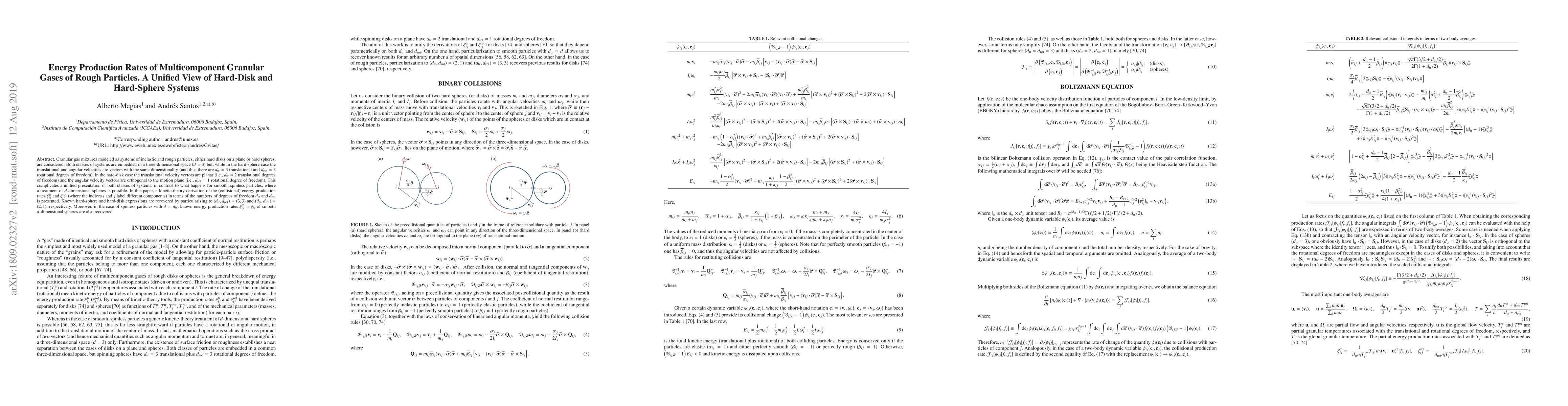 Granular gas mixtures modeled as systems of inelastic and rough particles, either hard disks on a plane or hard spheres, are considered. Both classes of systems are embedded in a three-dimensional space ($d=3$) but, while in the hard-sphere case the translational and angular velocities are vectors with the same dimensionality (and thus there are $d_{\text{tr}}=3$ translational and $d_{\text{rot}}=3$ rotational degrees of freedom), in the hard-disk case the translational velocity vectors are planar (i.e., $d_{\text{tr}}=2$ translational degrees of freedom) and the angular velocity vectors are orthogonal to the motion plane (i.e., $d_{\text{rot}}=1$ rotational degree of freedom). This complicates a unified presentation of both classes of systems, in contrast to what happens for smooth, spinless particles, where a treatment of $d$-dimensional spheres is possible. In this paper, a kinetic-theory derivation of the (collisional) energy production rates $\xi_{ij}^{\text{tr}}$ and $\xi_{ij}^{\text{rot}}$ (where the indices $i$ and $j$ label different components) in terms of the numbers of degrees of freedom $d_{\text{tr}}$ and $d_{\text{rot}}$ is presented. Known hard-sphere and hard-disk expressions are recovered by particularizing to $(d_{\text{tr}},d_{\text{rot}})=(3,3)$ and $(d_{\text{tr}},d_{\text{rot}})=(2,1)$, respectively. Moreover, in the case of spinless particles with $d=d_{\text{tr}}$, known energy production rates $\xi_{ij}^{\text{tr}}=\xi_{ij}$ of smooth $d$-dimensional spheres are also recovered.