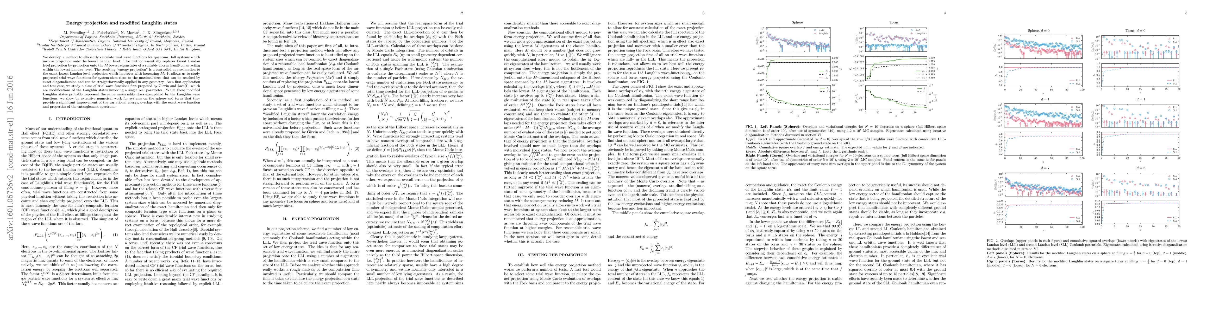 Researchers developed a method to improve calculations of quantum Hall systems by projecting trial wave functions onto lower energy states, leading to better variational energies and entanglement spectrum properties.