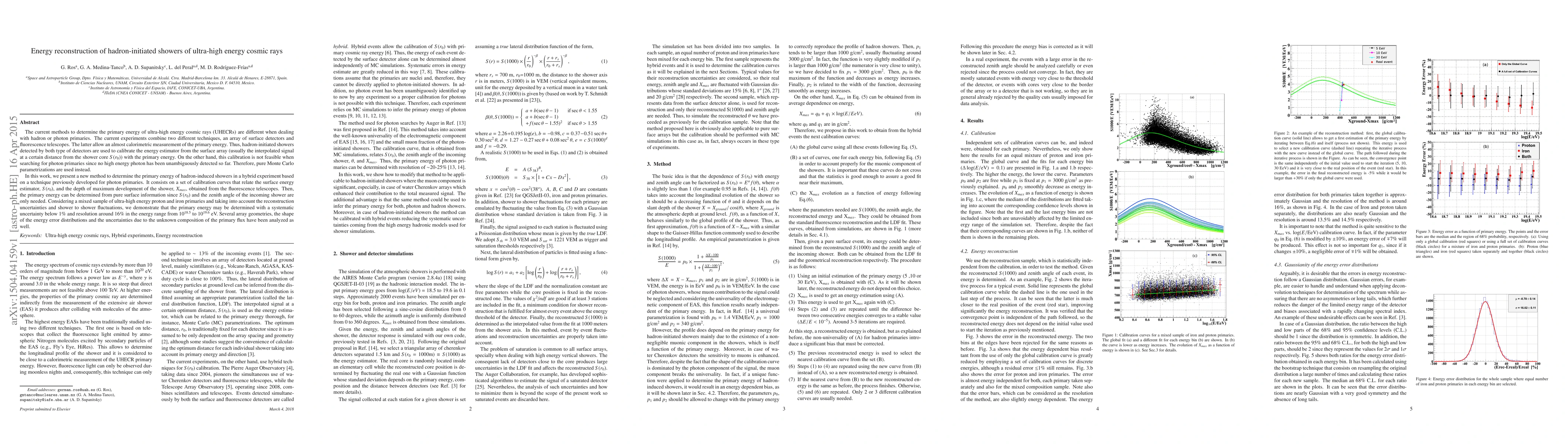 The current methods to determine the primary energy of ultra-high energy cosmic rays (UHECRs) are different when dealing with hadron or photon primaries. The current experiments combine two different techniques, an array of surface detectors and fluorescence telescopes. The latter allow an almost calorimetric measurement of the primary energy. Thus, hadron-initiated showers detected by both type of detectors are used to calibrate the energy estimator from the surface array (usually the interpolated signal at a certain distance from the shower core S(r0)) with the primary energy. On the other hand, this calibration is not feasible when searching for photon primaries since no high energy photon has been unambiguously detected so far. Therefore, pure Monte Carlo parametrizations are used instead. In this work, we present a new method to determine the primary energy of hadron-induced showers in a hybrid experiment based on a technique previously developed for photon primaries. It consists on a set of calibration curves that relate the surface energy estimator, S(r0), and the depth of maximum development of the shower, Xmax, obtained from the fluorescence telescopes. Then, the primary energy can be determined from pure surface information since S(r0) and the zenith angle of the incoming shower are only needed. Considering a mixed sample of ultra-high energy proton and iron primaries and taking into account the reconstruction uncertainties and shower to shower fluctuations, we demonstrate that the primary energy may be determined with a systematic uncertainty below 1% and resolution around 16% in the energy range from 10^{18.5} to 10^{19.6} eV. Several array geometries, the shape of the energy error distributions and the uncertainties due to the unknown composition of the primary flux have been analyzed as well.