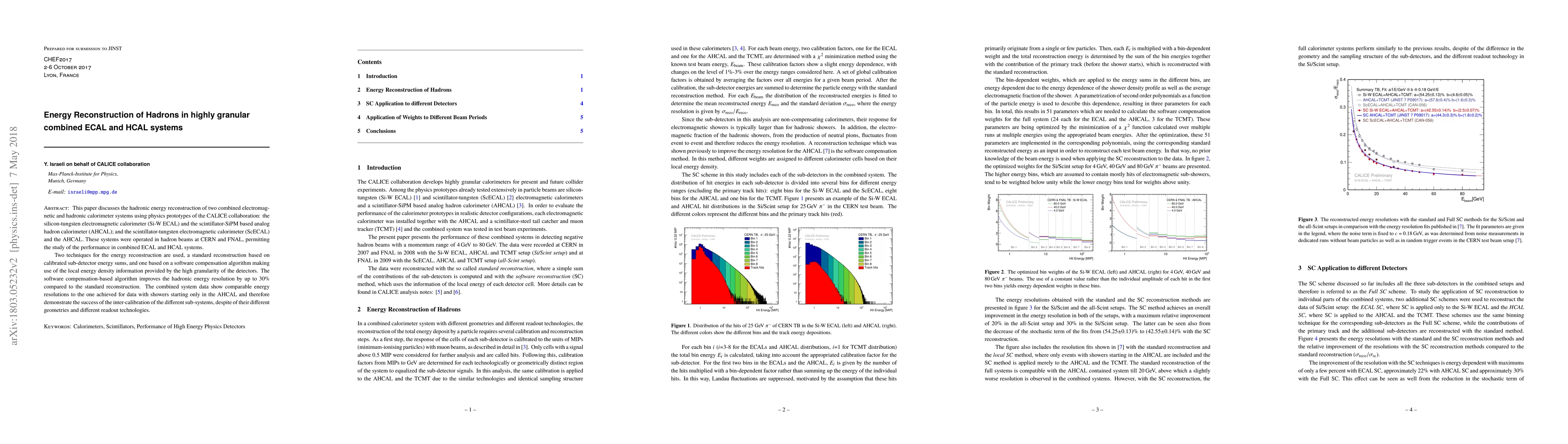 This paper evaluates the energy reconstruction of hadrons using combined electromagnetic and hadronic calorimeter systems from the CALICE collaboration, showing improved performance with a software compensation algorithm. The study demonstrates the successful inter-calibration of different sub-systems despite their varied geometries and technologies.