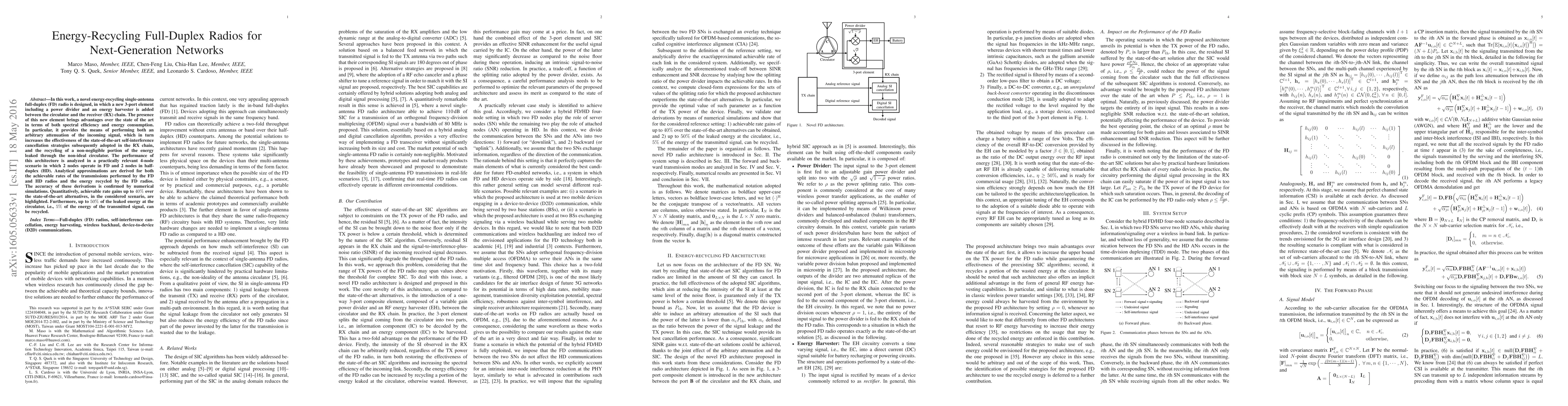This paper introduces a novel energy-recycling single-antenna full-duplex radio with a 3-port element that enhances spectral efficiency and reduces energy consumption by recycling leaked energy and improving self-interference cancellation. Analytical and simulation results show up to 40% rate gains and 50% energy recycling in a 4-node network scenario.