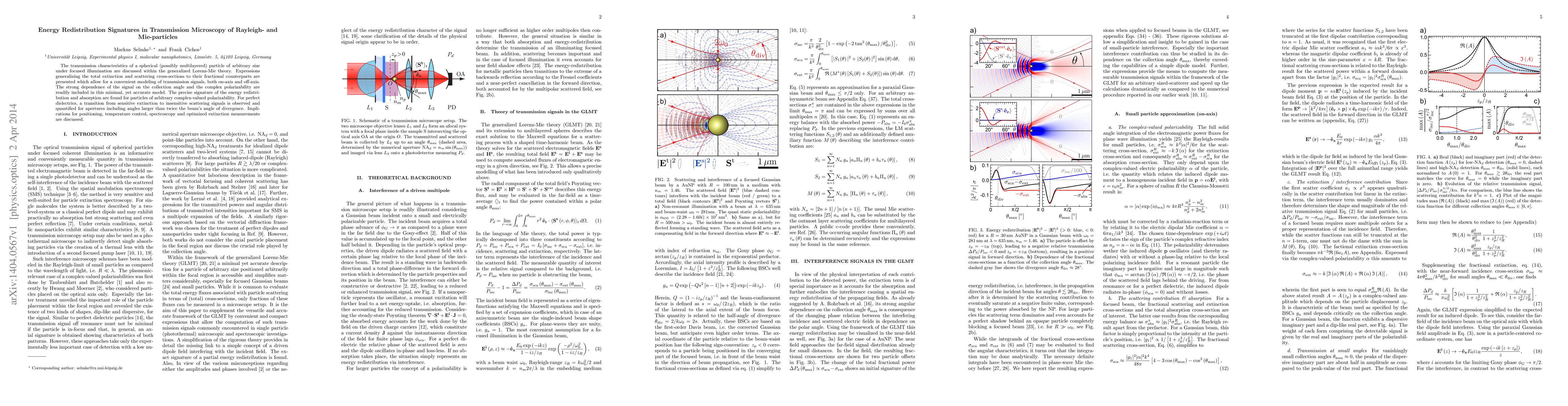 The transmission characteristics of a spherical (possibly multilayered) particle of arbitrary size under focused illumination are discussed within the generalized Lorenz-Mie theory. Expressions generalizing the total extinction and scattering cross-sections to their fractional counterparts are presented which allow for a convenient modeling of transmission signals, both on-axis and off-axis. The strong dependence of the signal on the collection angle and the complex polarizability are readily included in this minimal, yet accurate model. The precise signature of the energy redistribution and absorption are found for particles of arbitrary complex-valued polarizability. For perfect dielectrics, a transition from sensitive extinction to insensitive scattering signals is observed and quantified for apertures including angles larger than twice the beam's angle of divergence. Implications for positioning, temperature control, spectroscopy and optimized extinction measurements are discussed.
