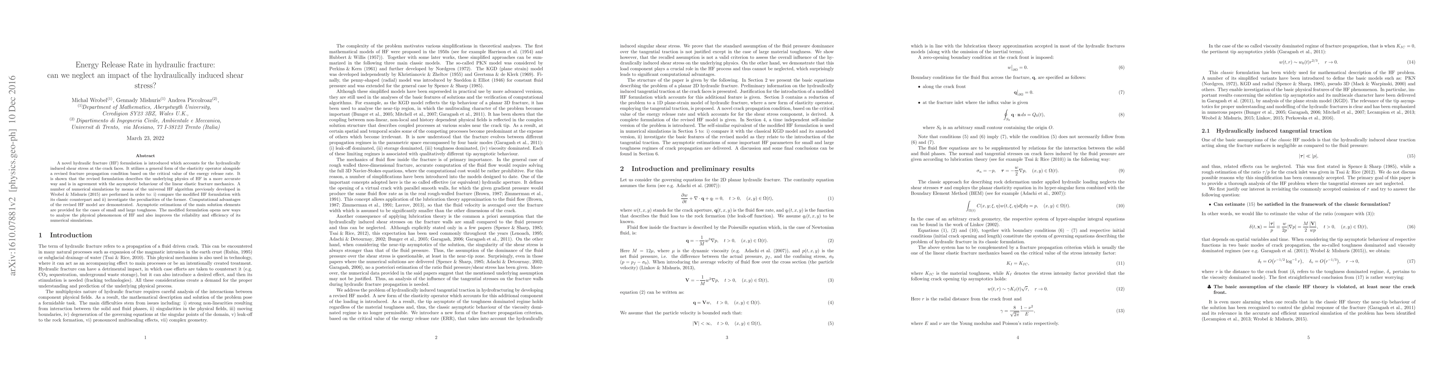 This paper introduces a novel hydraulic fracture formulation that considers hydraulically induced shear stress, demonstrating improved accuracy over traditional models. Numerical simulations show that the revised model enhances both the reliability and efficiency of hydraulic fracture analysis.