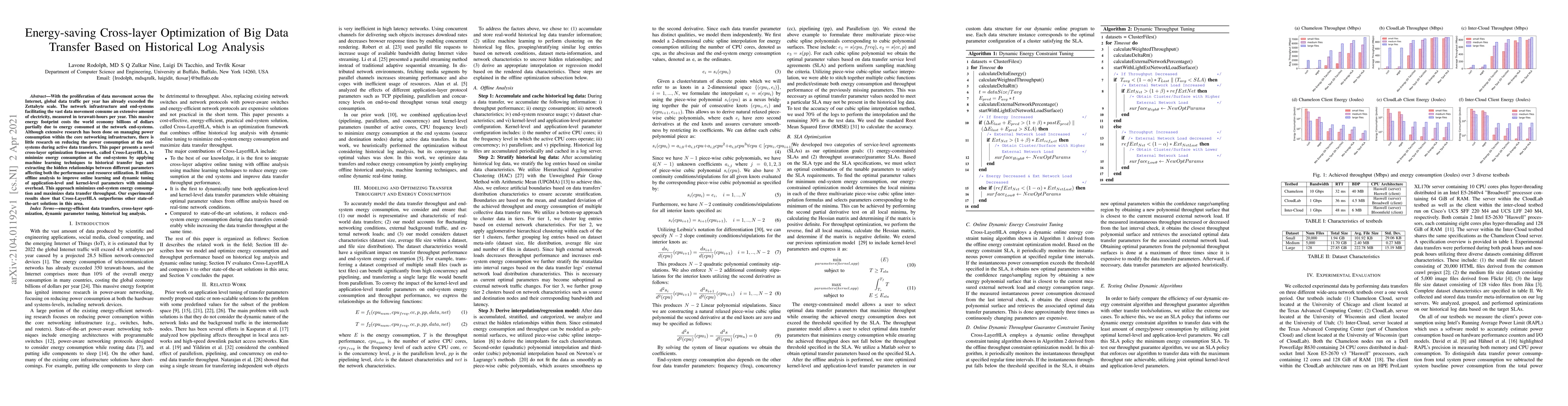 With the proliferation of data movement across the Internet, global data traffic per year has already exceeded the Zettabyte scale. The network infrastructure and end-systems facilitating the vast data movement consume an extensive amount of electricity, measured in terawatt-hours per year. This massive energy footprint costs the world economy billions of dollars partially due to energy consumed at the network end-systems. Although extensive research has been done on managing power consumption within the core networking infrastructure, there is little research on reducing the power consumption at the end-systems during active data transfers. This paper presents a novel cross-layer optimization framework, called Cross-LayerHLA, to minimize energy consumption at the end-systems by applying machine learning techniques to historical transfer logs and extracting the hidden relationships between different parameters affecting both the performance and resource utilization. It utilizes offline analysis to improve online learning and dynamic tuning of application-level and kernel-level parameters with minimal overhead. This approach minimizes end-system energy consumption and maximizes data transfer throughput. Our experimental results show that Cross-LayerHLA outperforms other state-of-the-art solutions in this area.