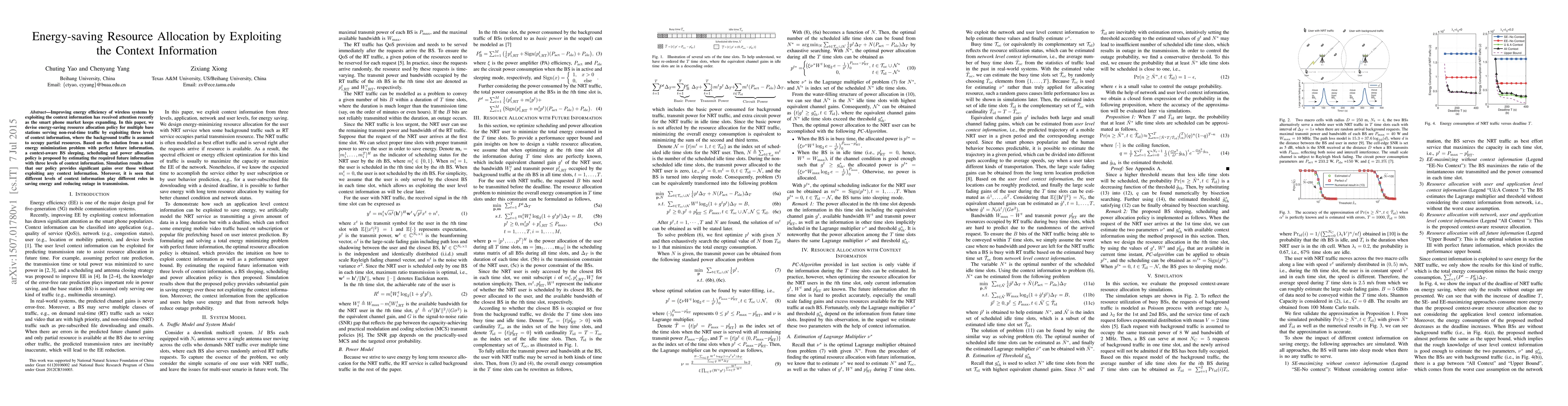 A new energy-saving resource allocation policy is proposed for multiple base stations in wireless systems, leveraging context information to optimize energy efficiency and reduce outage. Simulation results show significant gains over traditional policies without exploiting context information.