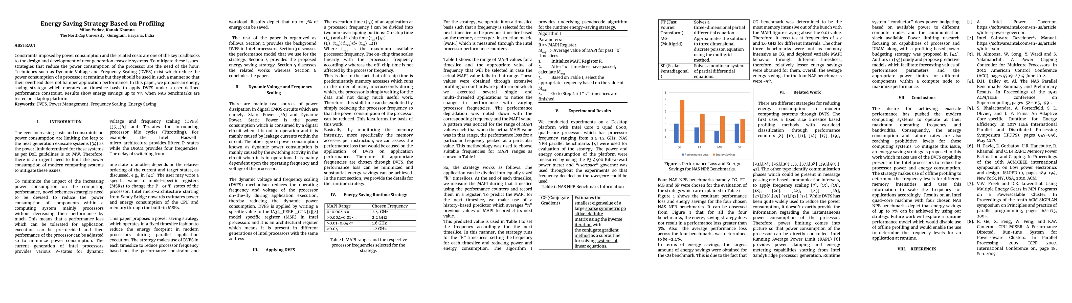 Constraints imposed by power consumption and the related costs are one of the key roadblocks to the design and development of next generation exascale systems. To mitigate these issues, strategies that reduce the power consumption of the processor are the need of the hour. Techniques such as Dynamic Voltage and Frequency Scaling (DVFS) exist which reduce the power consumption of a processor at runtime but they should be used in such a manner so that their overhead does not hamper application performance. In this paper, we propose an energy saving strategy which operates on timeslice basis to apply DVFS under a user defined performance constraint. Results show energy savings up to 7% when NAS benchmarks are tested on a laptop platform