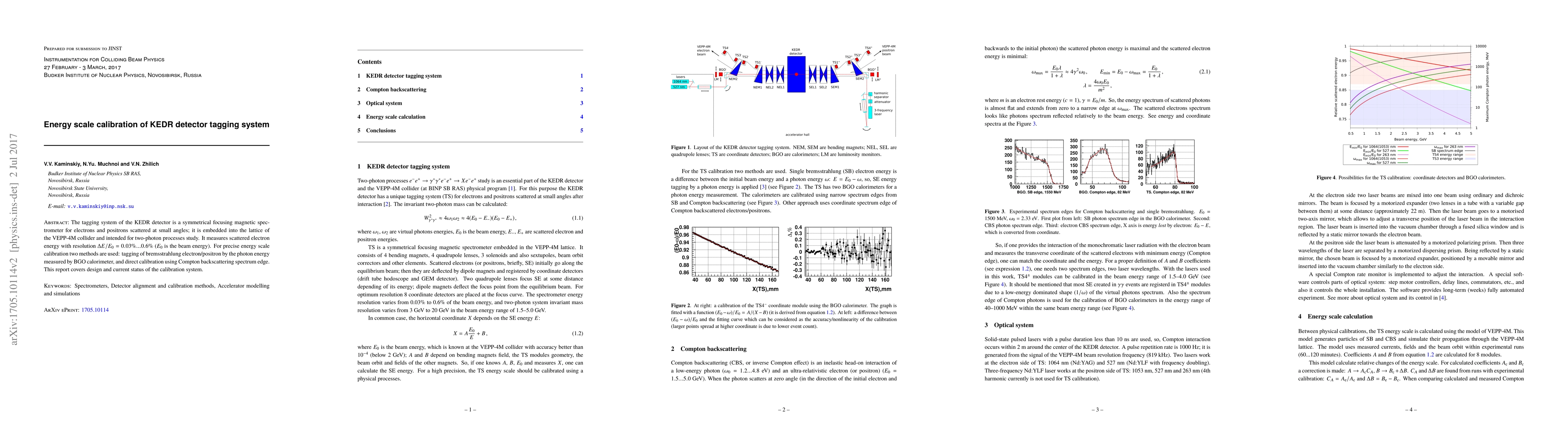 This paper discusses the calibration methods for the KEDR detector's tagging system, which measures scattered electron and positron energies with high precision. The calibration employs bremsstrahlung tagging and Compton backscattering for accurate energy scale determination.