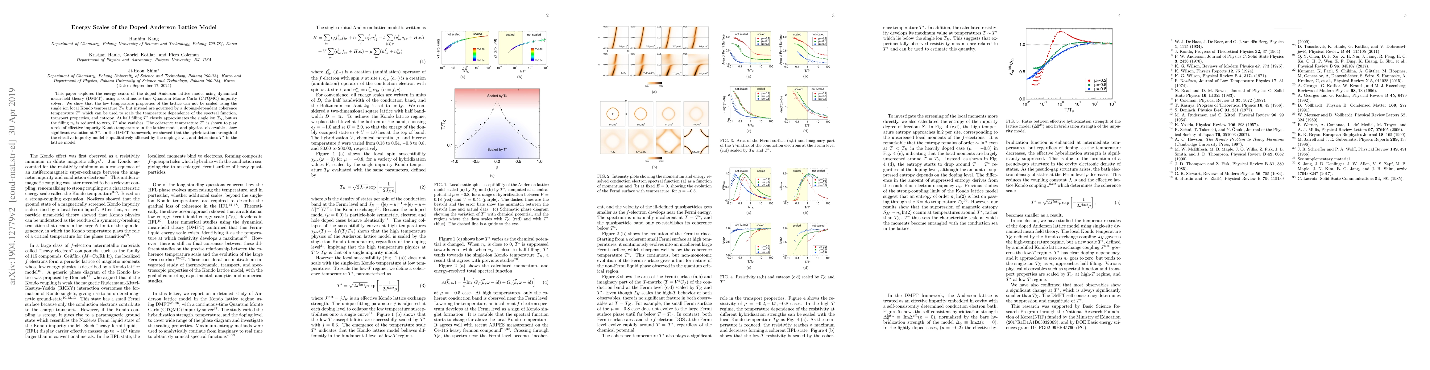 This paper investigates the energy scales in the doped Anderson lattice model using DMFT and CTQMC, revealing that low-temperature properties are governed by a doping-dependent coherence temperature $T*$ rather than the single ion Kondo temperature. $T*$ determines the scaling of spectral function, transport properties, and entropy, evolving significantly at this temperature.
