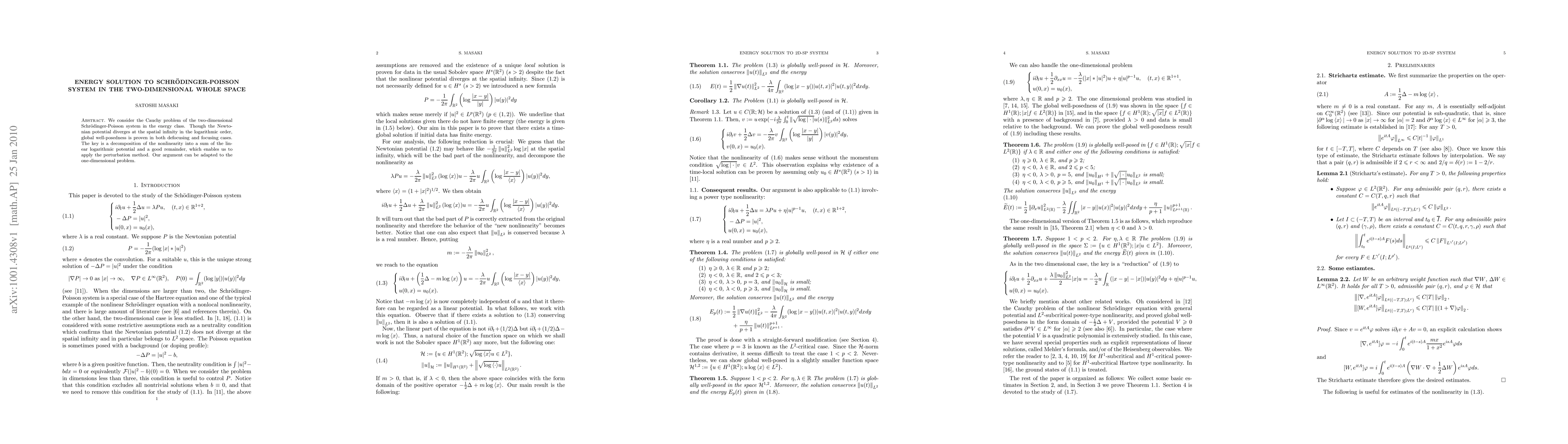 This paper proves global well-posedness for the two-dimensional Schrödinger-Poisson system in the energy class, addressing the challenge of the logarithmic divergence of the potential. The solution leverages a decomposition of the nonlinearity to apply the perturbation method effectively.